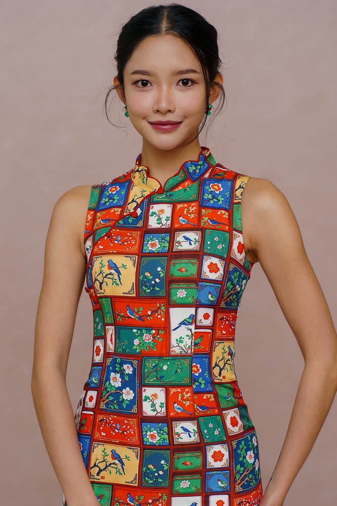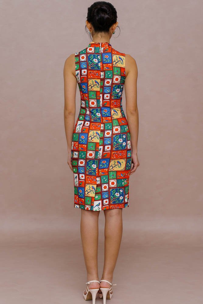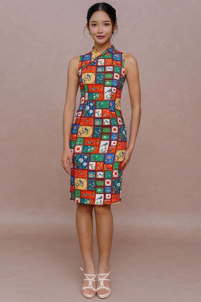 A HUNDRED PANELS OF SONGBEARERS CHEONGSAM DRESS (BOLD SATURATES)