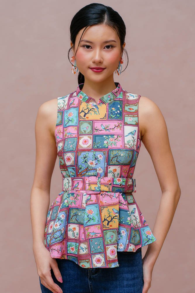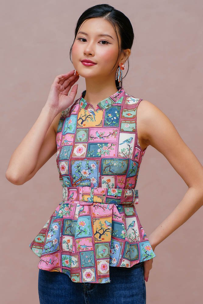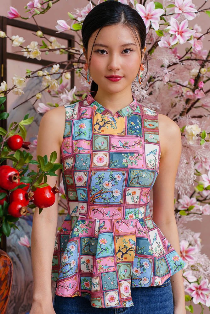A HUNDRED PANELS OF SONGBEARERS CHEONGSAM TOP (SOFT PASTELS)