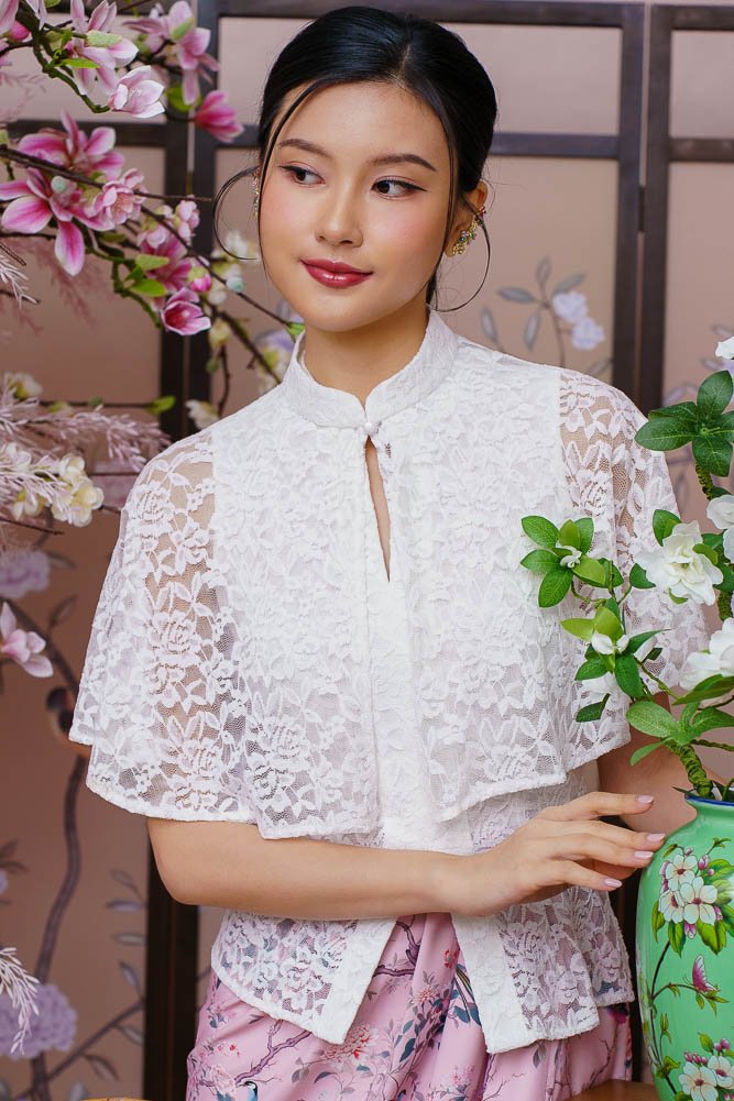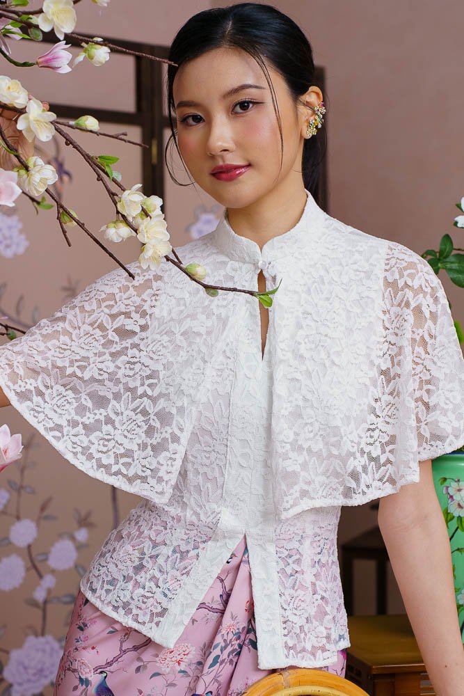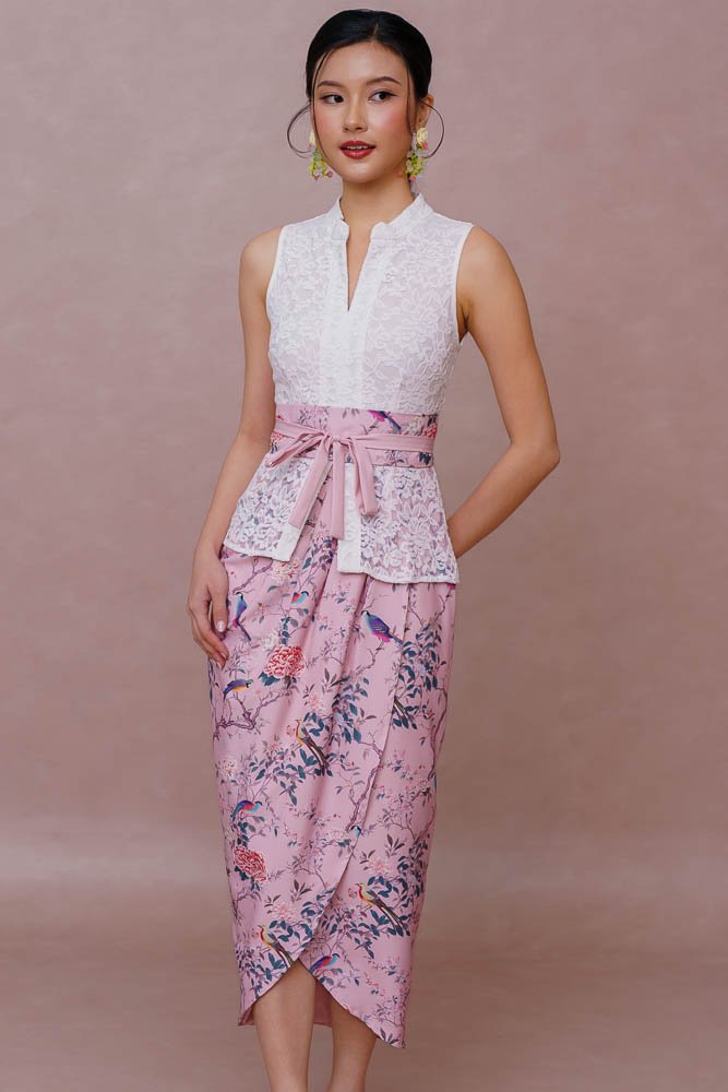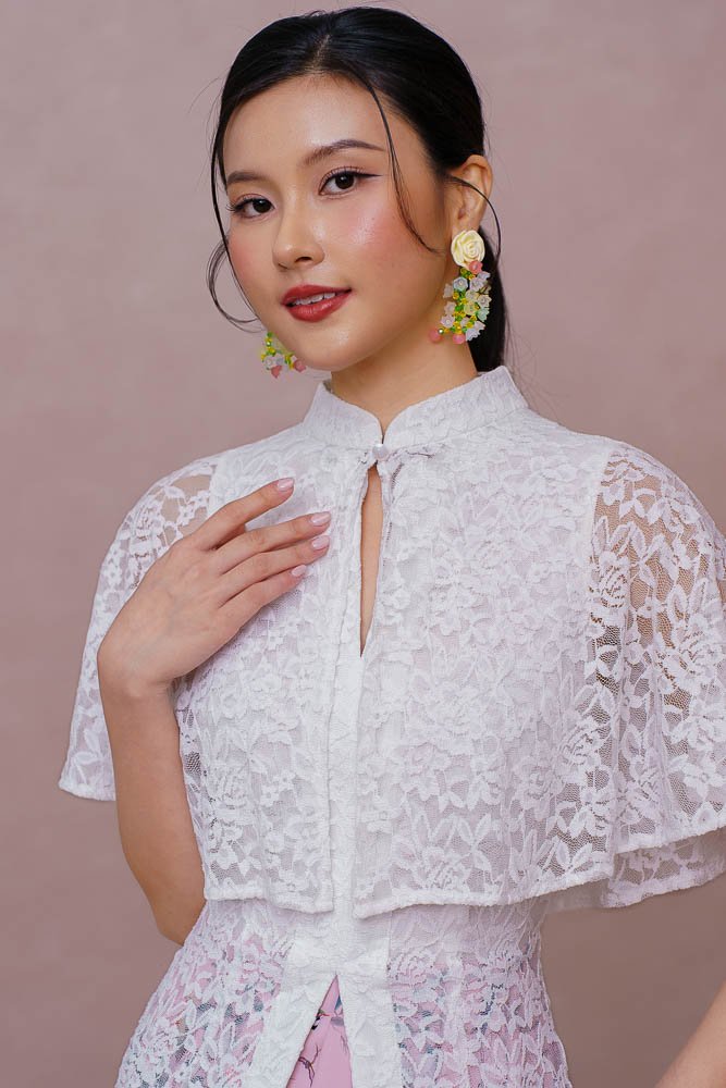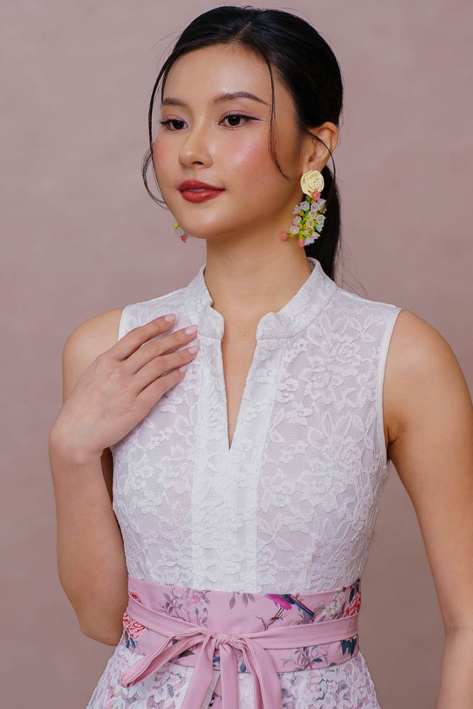 A SONG OF CANARY & BLOSSOMS LACE KEBAYA DRESS (MARIGOLD WHITE)