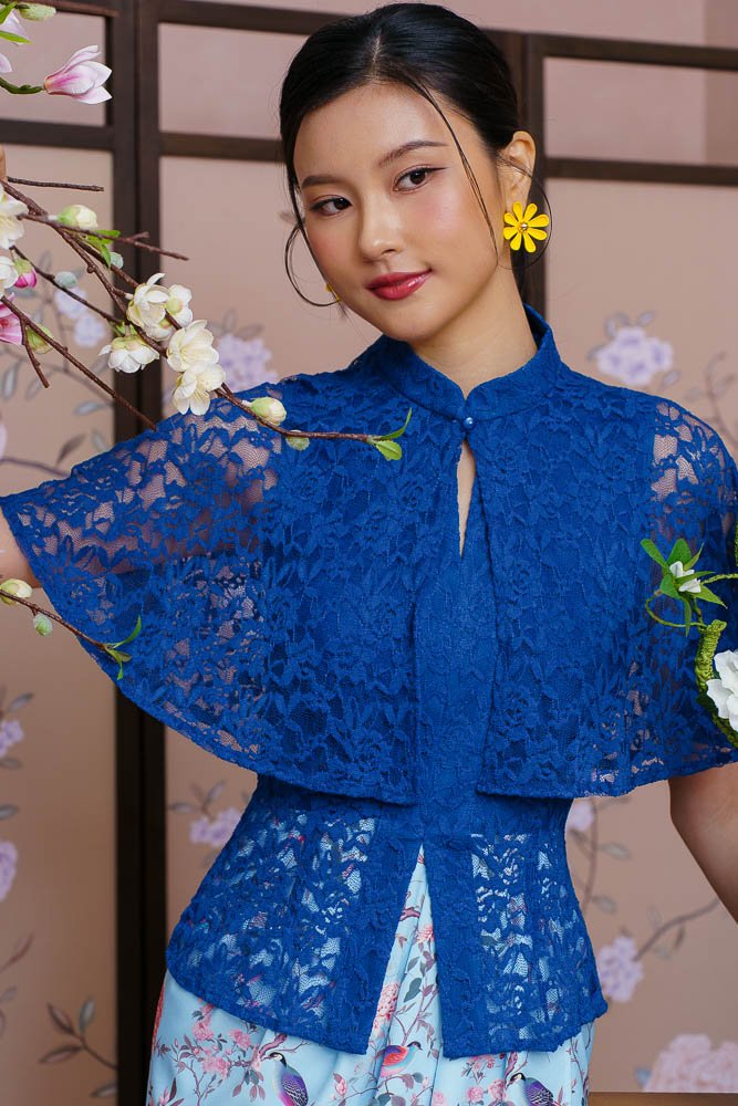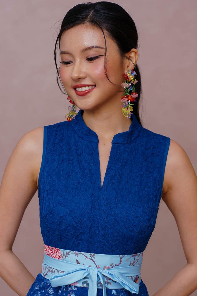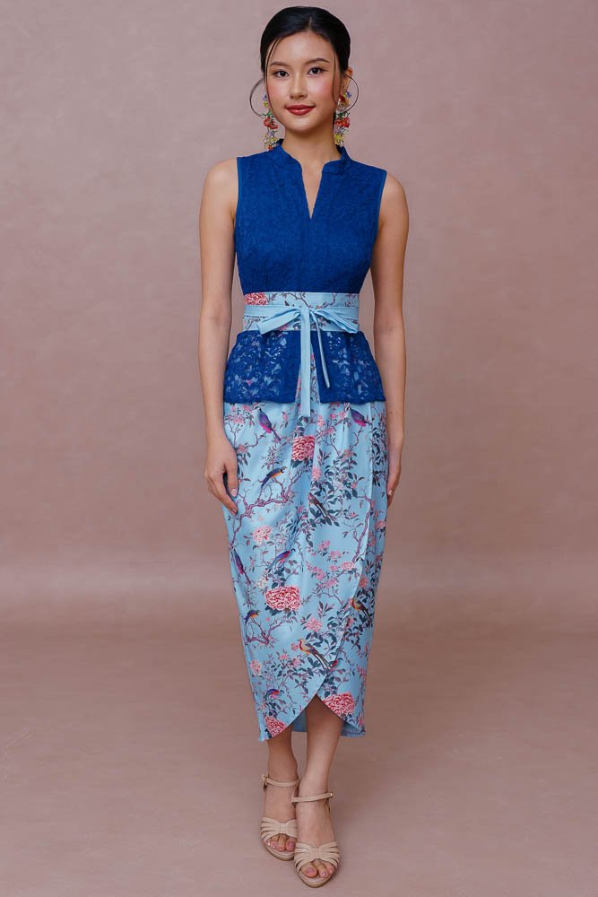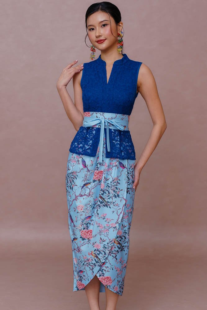 A SONG OF CANARY & BLOSSOMS LACE KEBAYA DRESS (PINKOI NAVY)