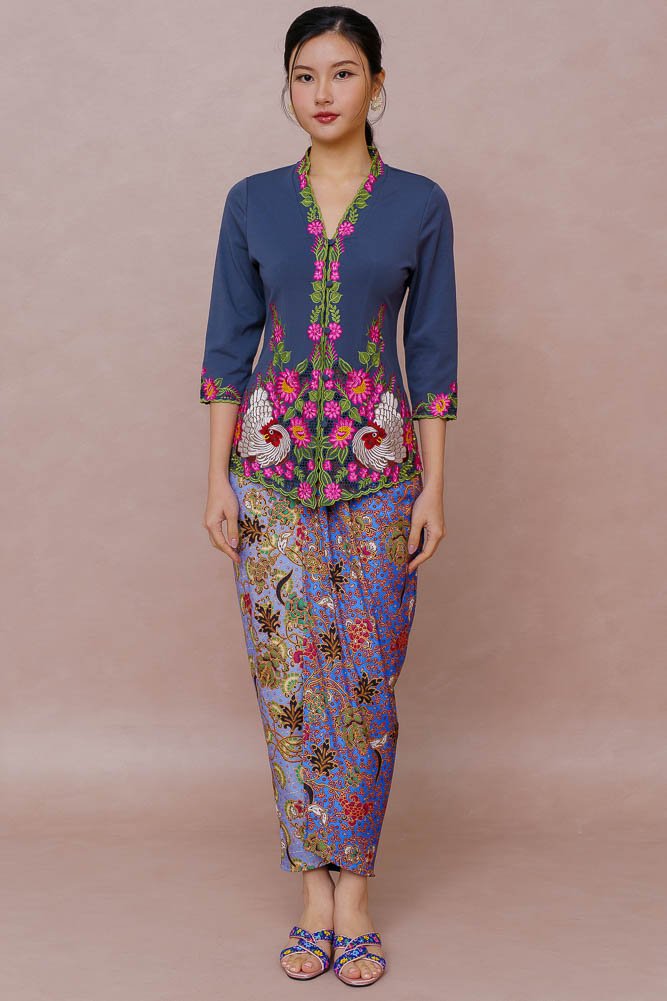 Note: The embroidery nyonya kebaya worn by the model is sold separately.