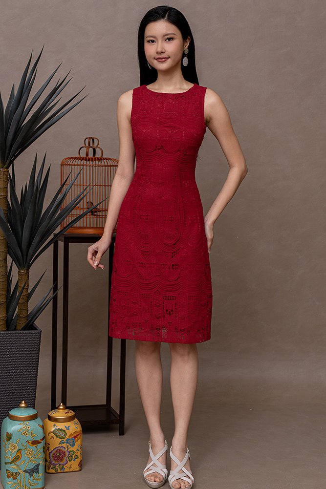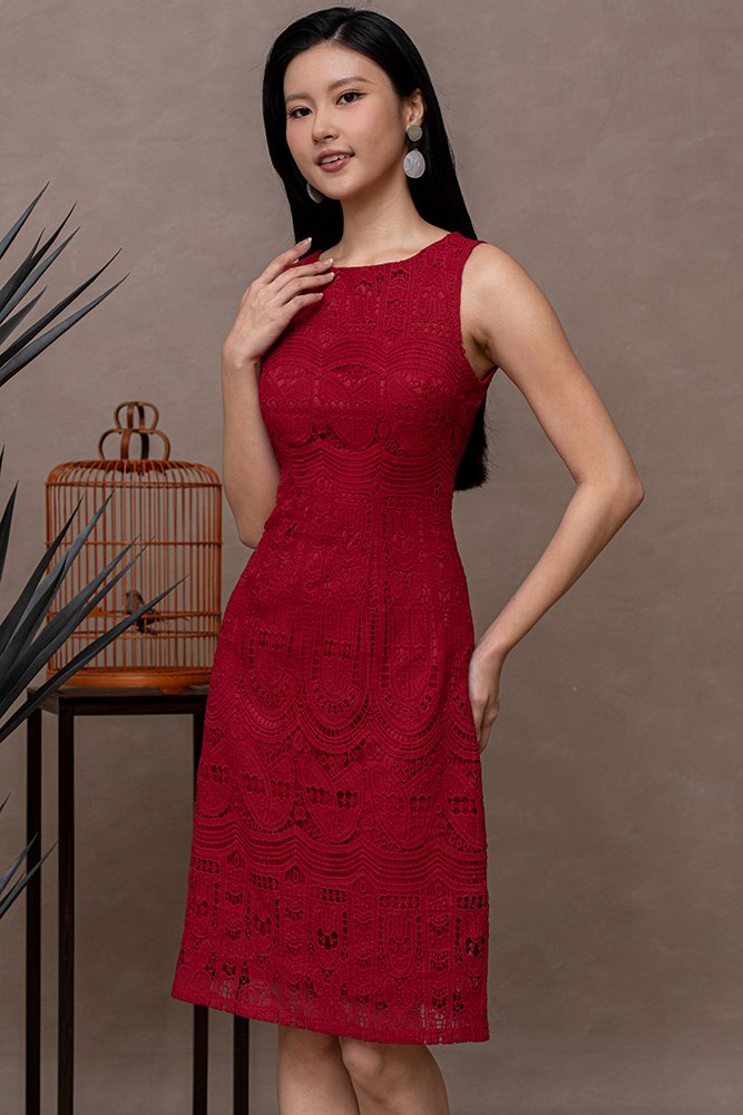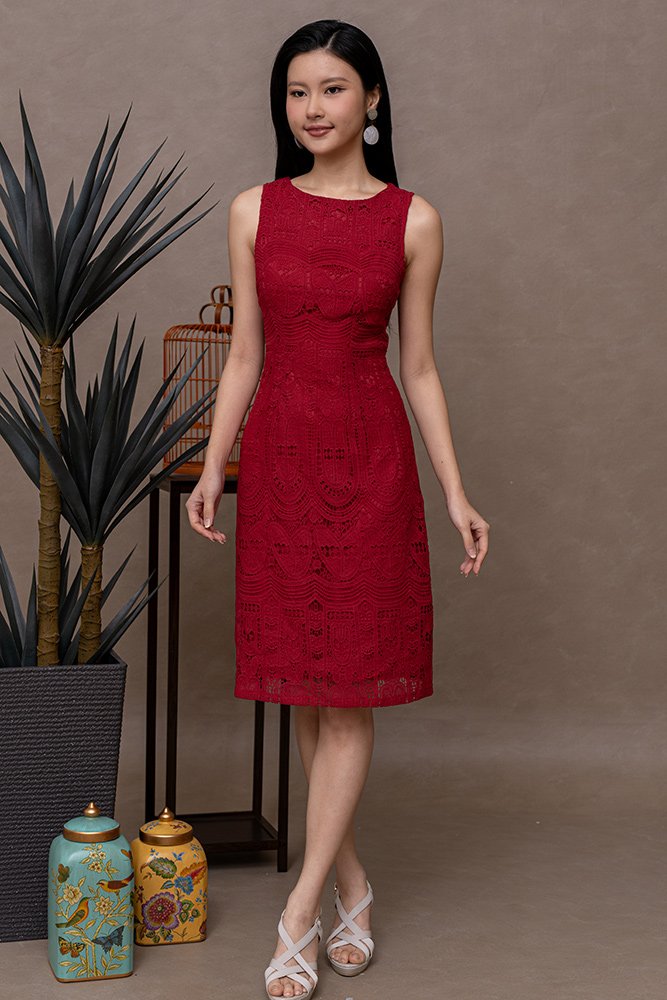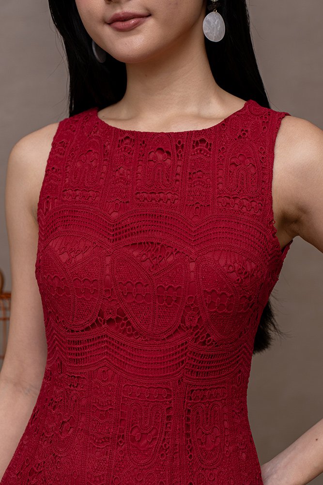 AIME CROCHET DRESS (WINE RED)