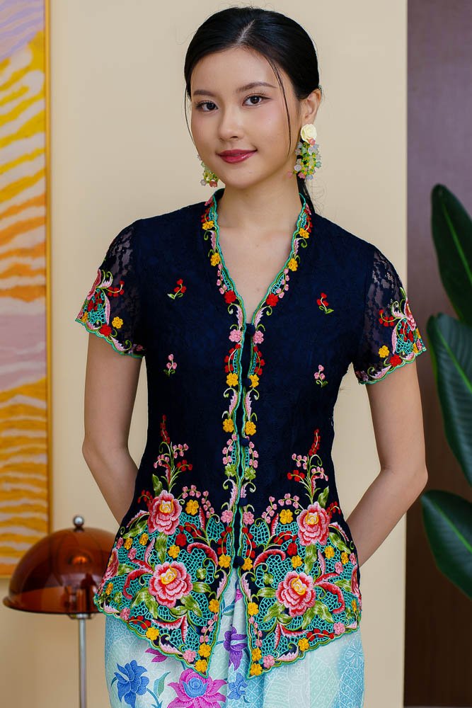AMARIS LACE EMBROIDERY NYONYA KEBAYA (DARK NAVY)