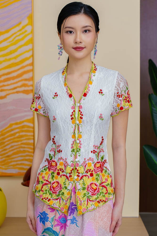AMARIS LACE EMBROIDERY NYONYA KEBAYA (WHITE)