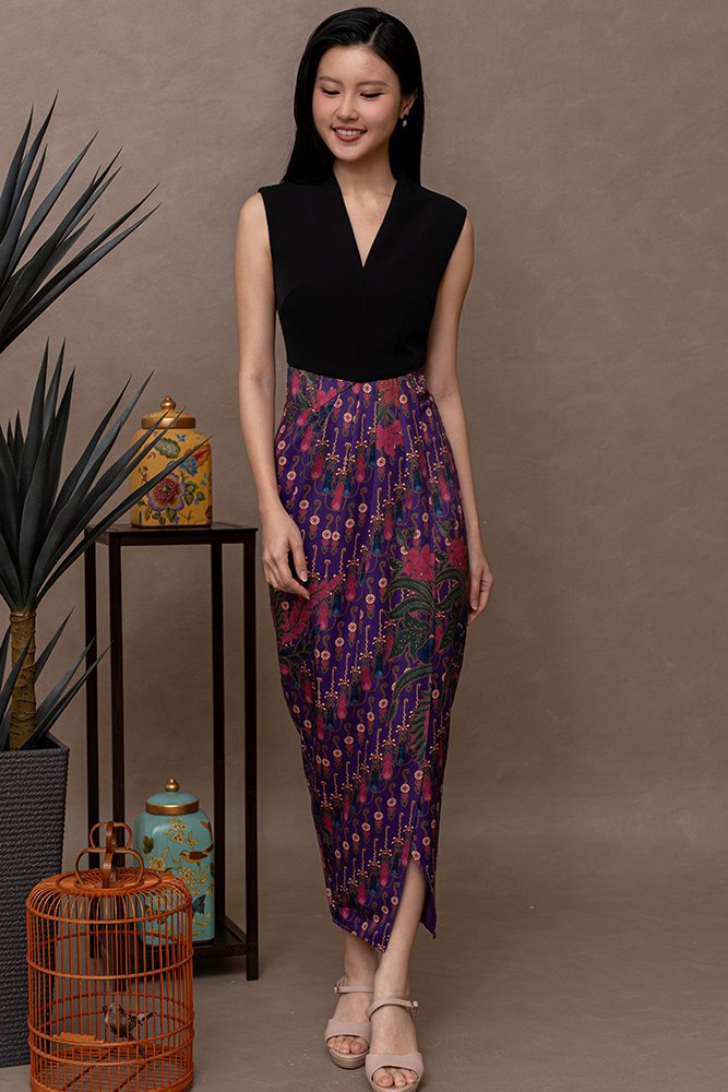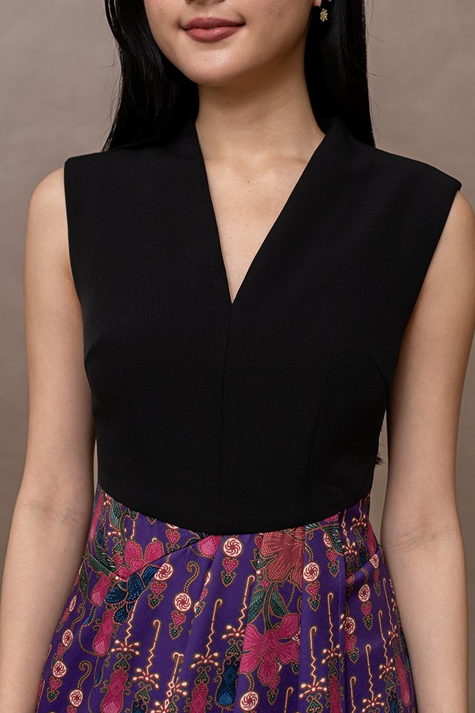 ANGKASA V NECK BATIK TULIP DRESS (BLACK)