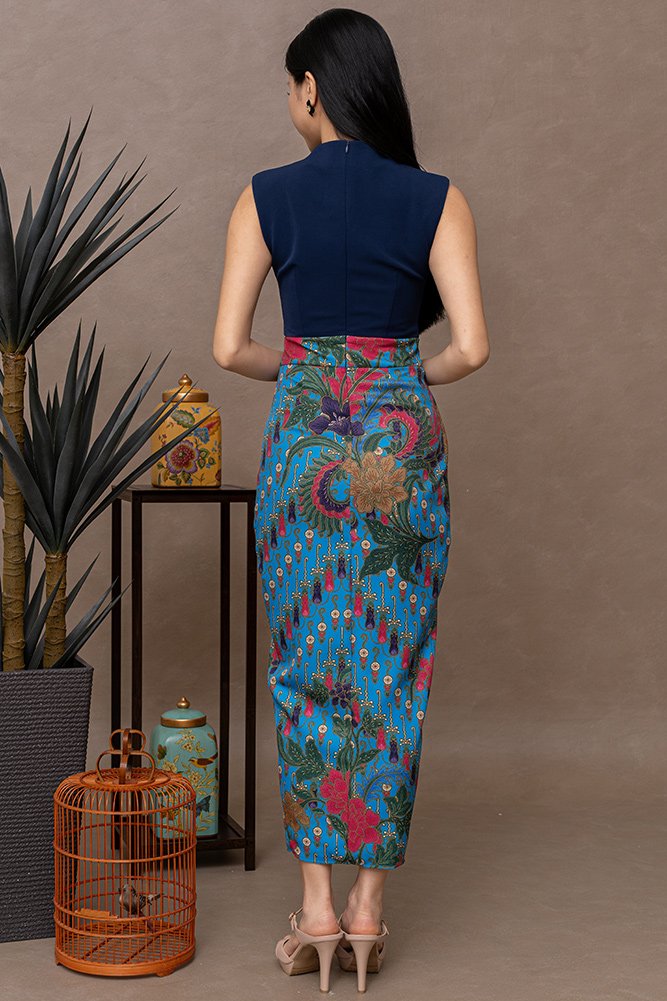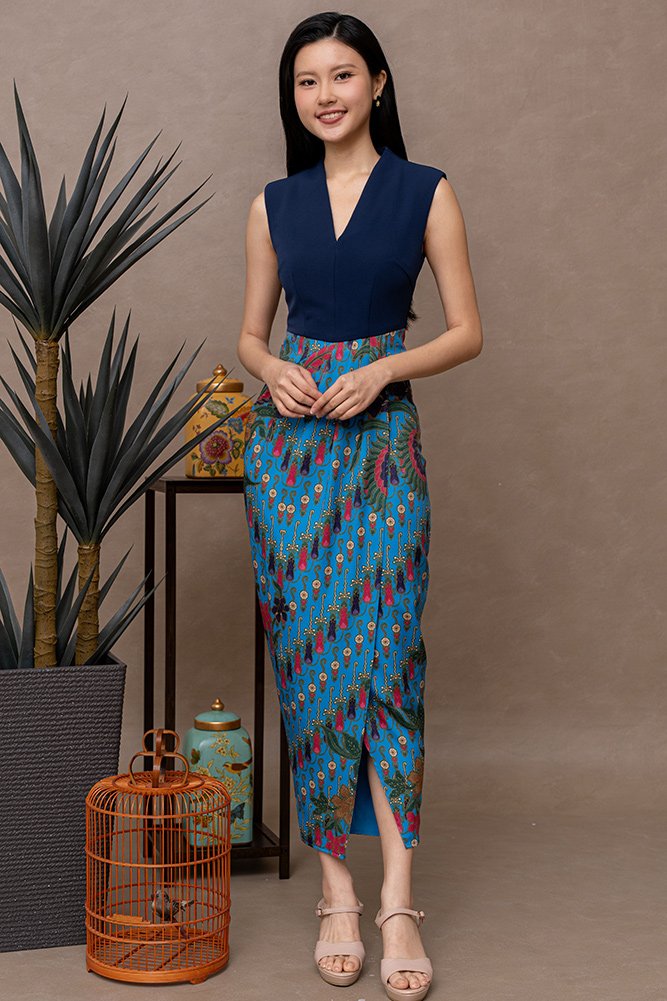ANGKASA V NECK BATIK TULIP DRESS (NAVY)