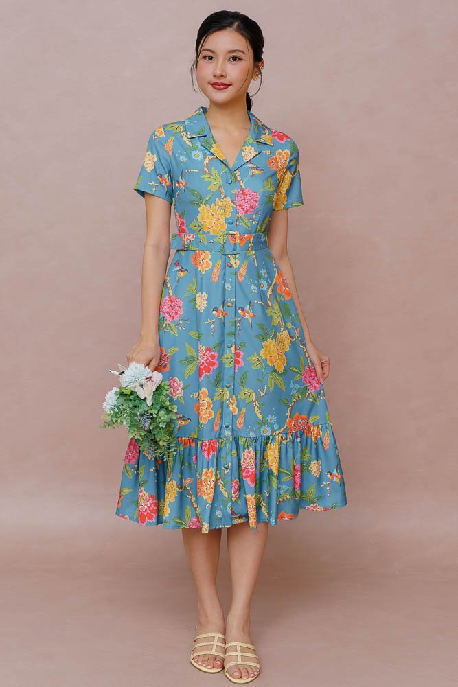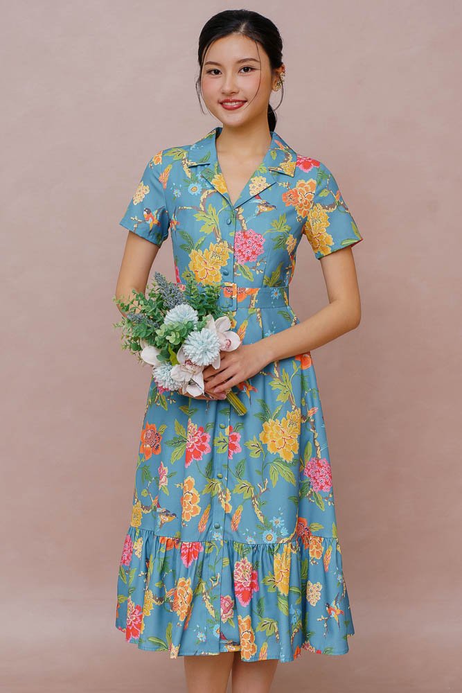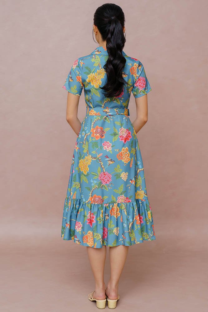 ARTEMISIA FLORAL SHIRT DRESS (DARK SEAFOAM)