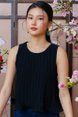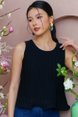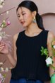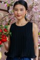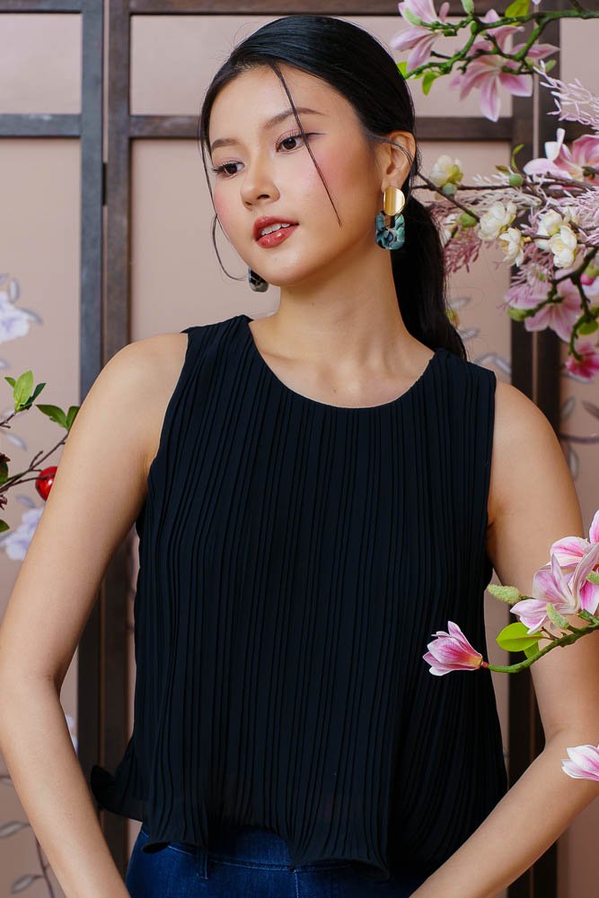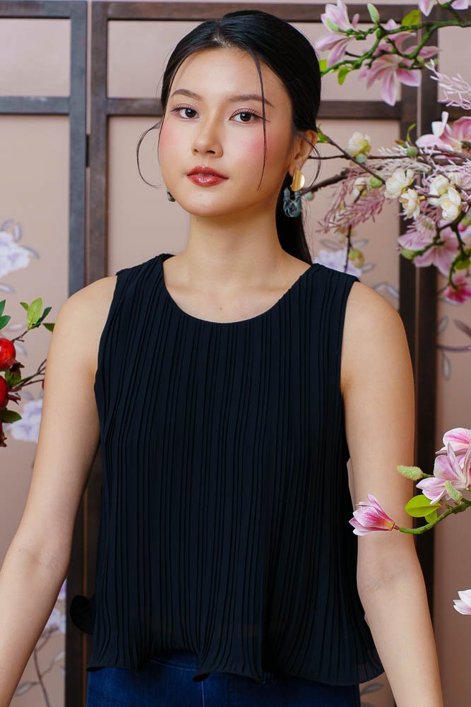 BELLE CURLED HEM PLEATED TOP (BLACK)