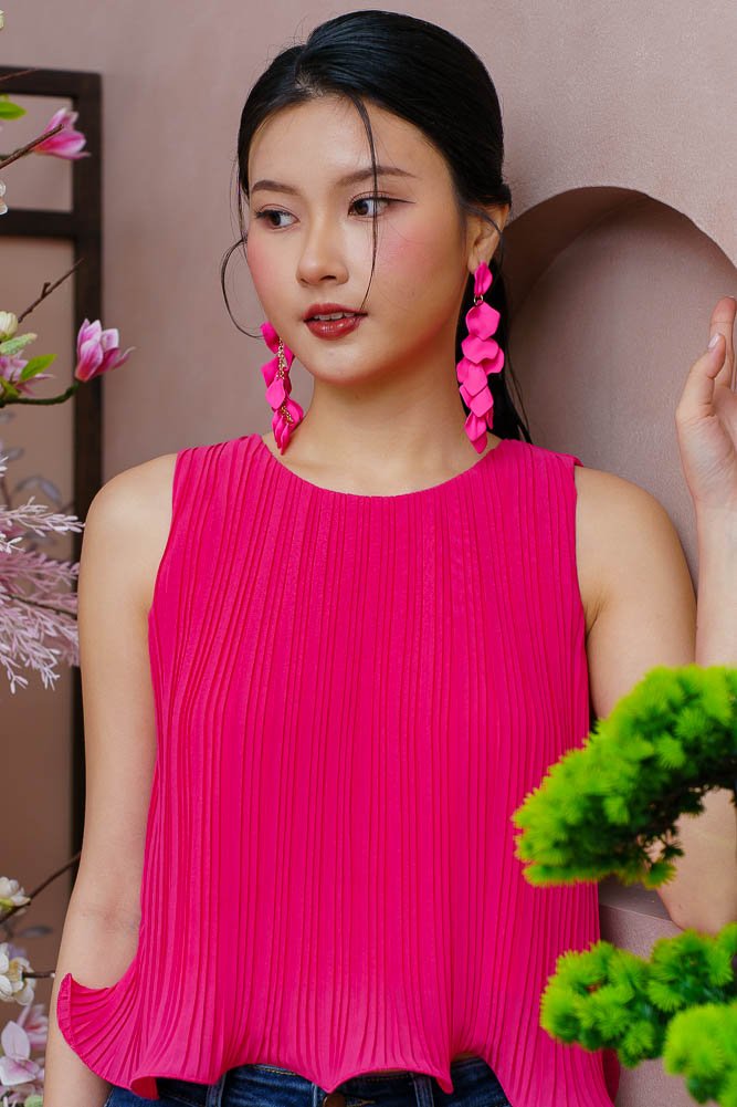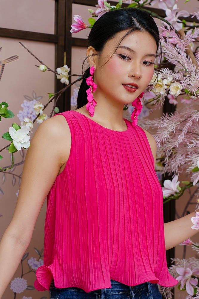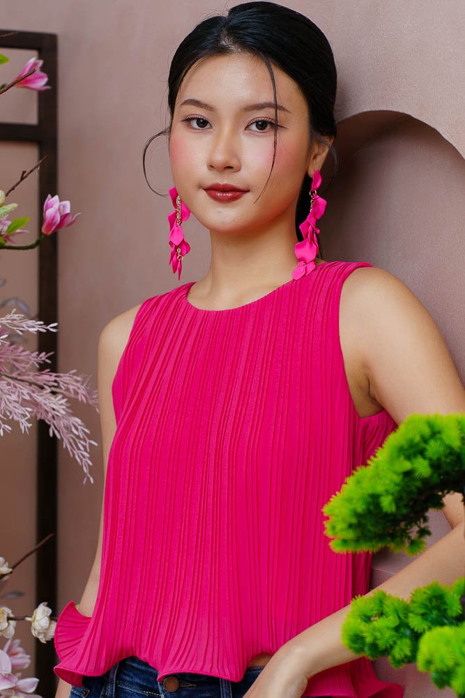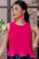 BELLE CURLED HEM PLEATED TOP (FUCHSIA)