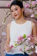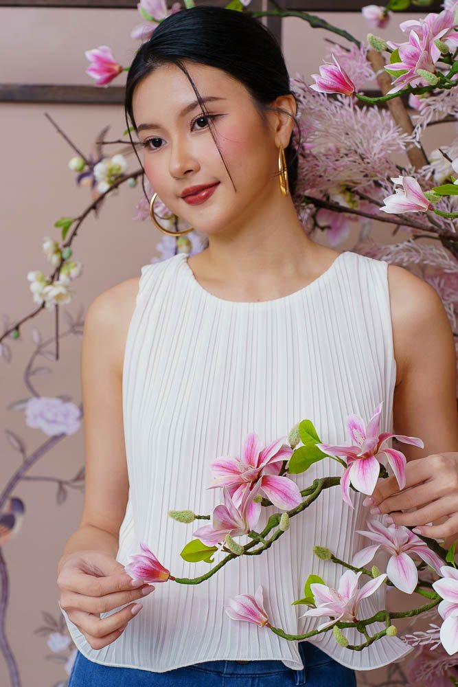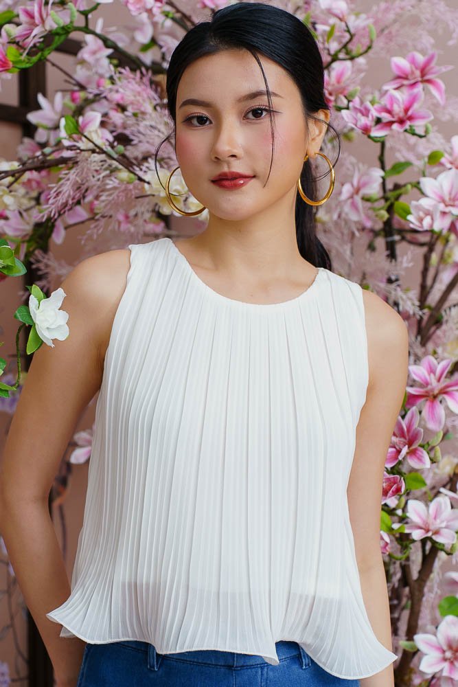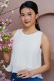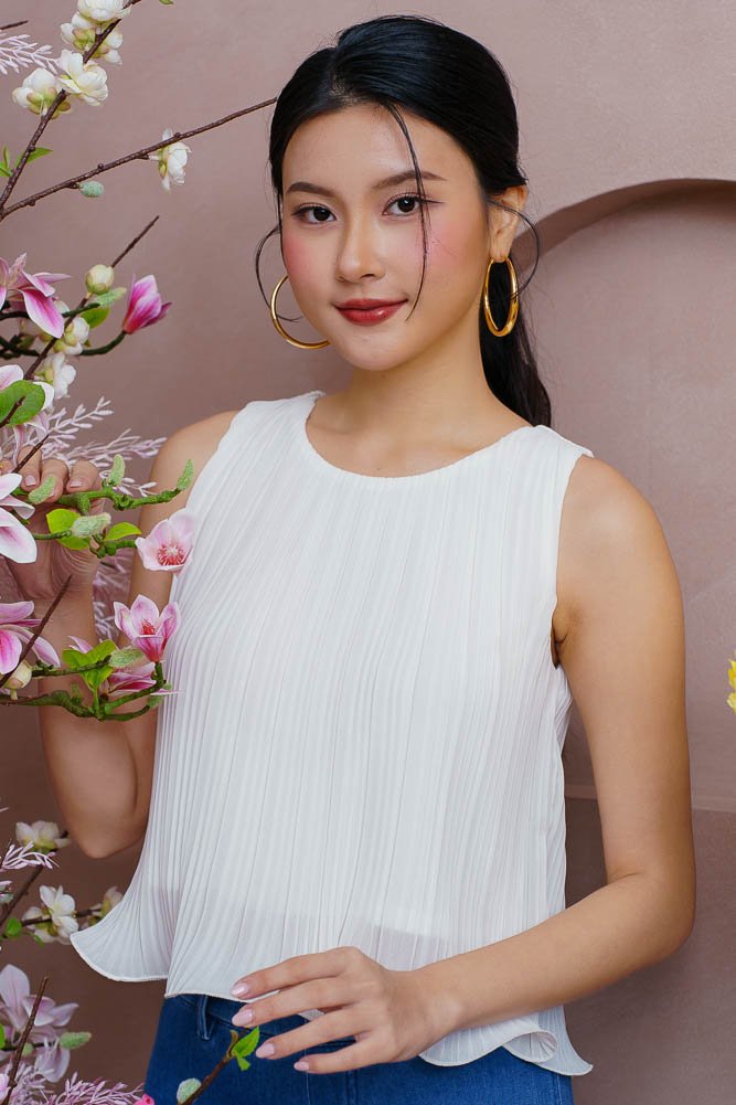 BELLE CURLED HEM PLEATED TOP (WHITE)