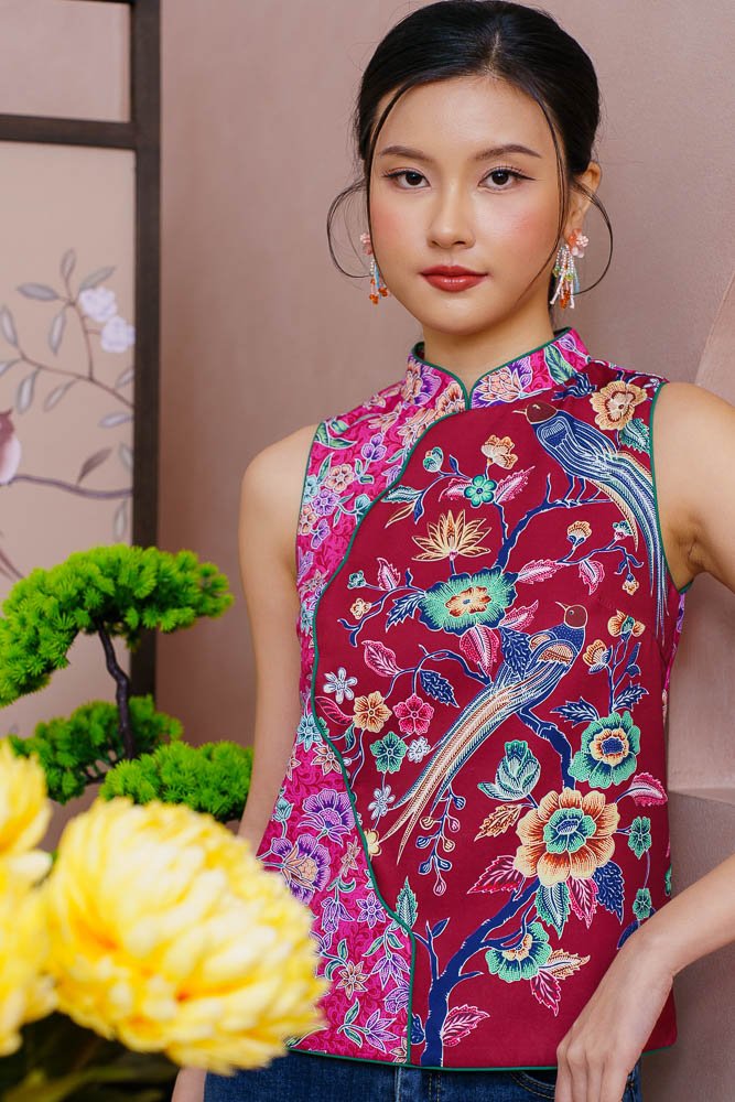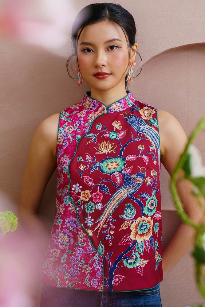 BIRDSONG TAPESTRY BATIK CHEONGSAM TOP (WINE RED)