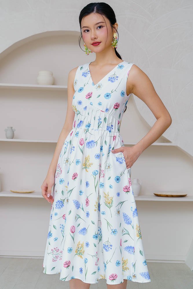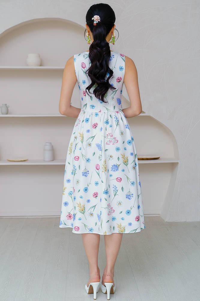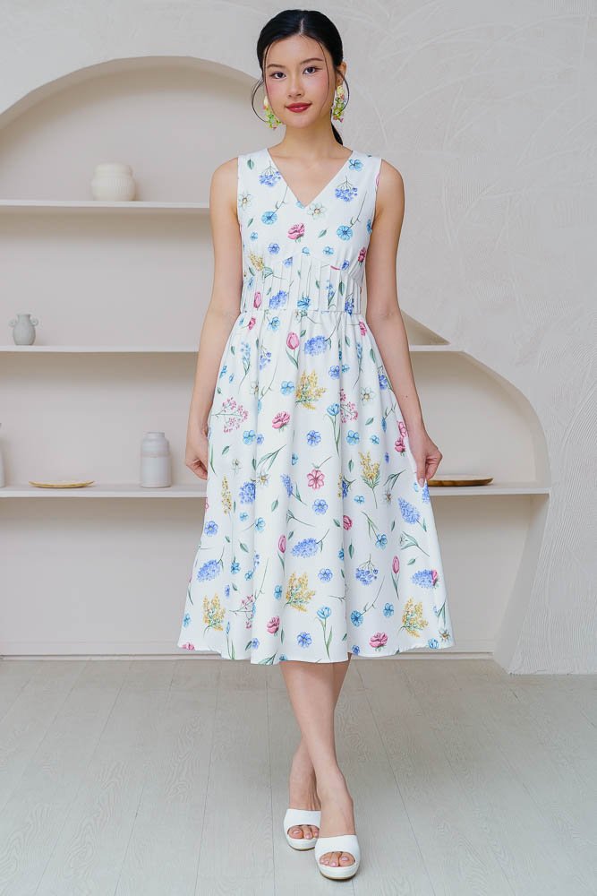 BUTTERCUP V NECK FLORAL DRESS (WHITE)