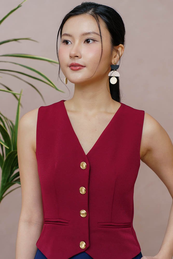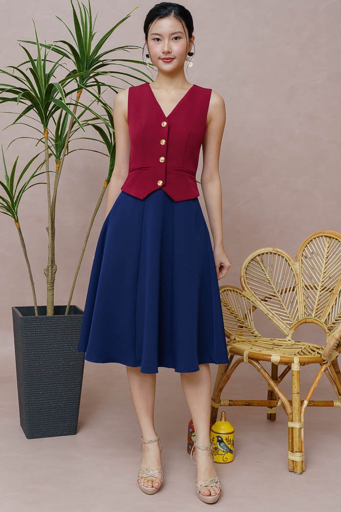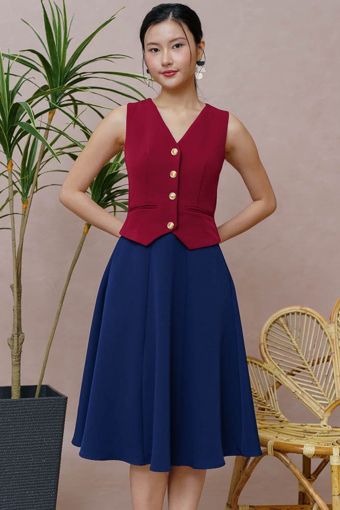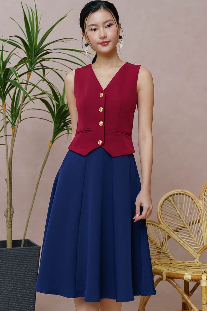 CAMILLE VEST DRESS (WINE RED)
