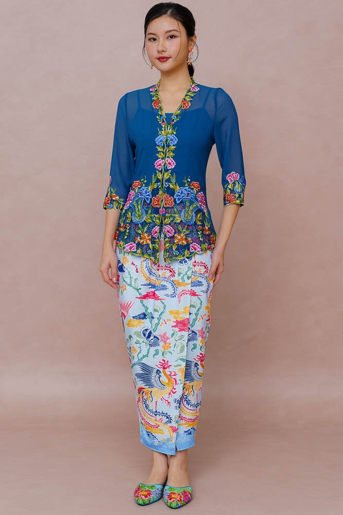 CELESTIAL PLUMAGE BATIK NYONYA SKIRT (COSMIC BLUE)