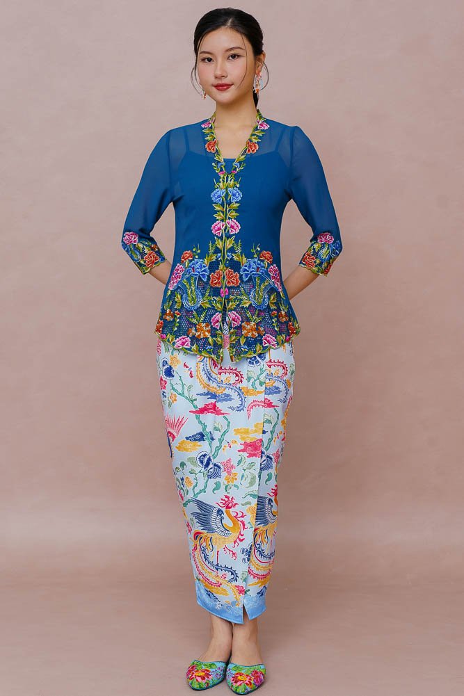 Note: The embroidery nyonya kebaya worn by the model is sold separately.