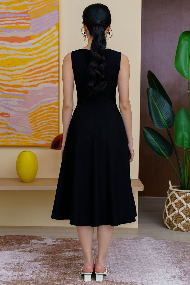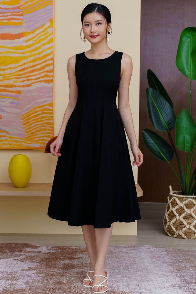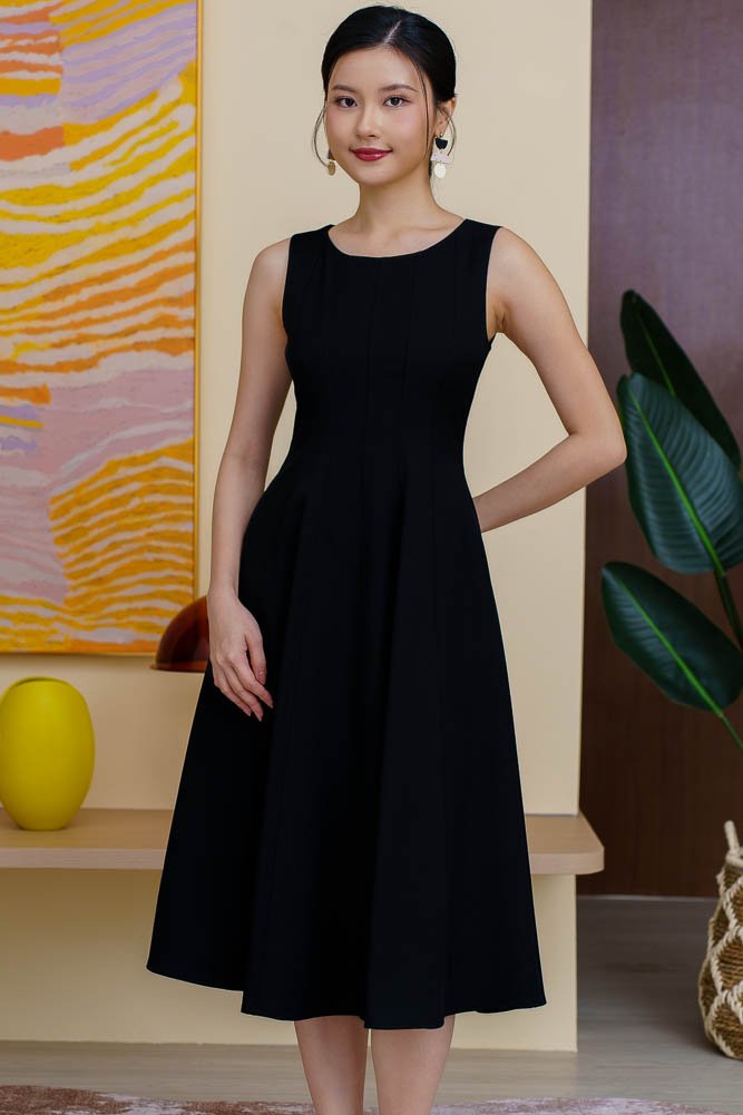 CONSTANZA PIPING FLARE DRESS (BLACK)