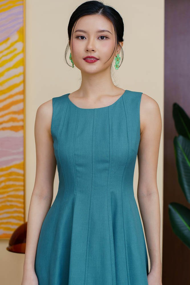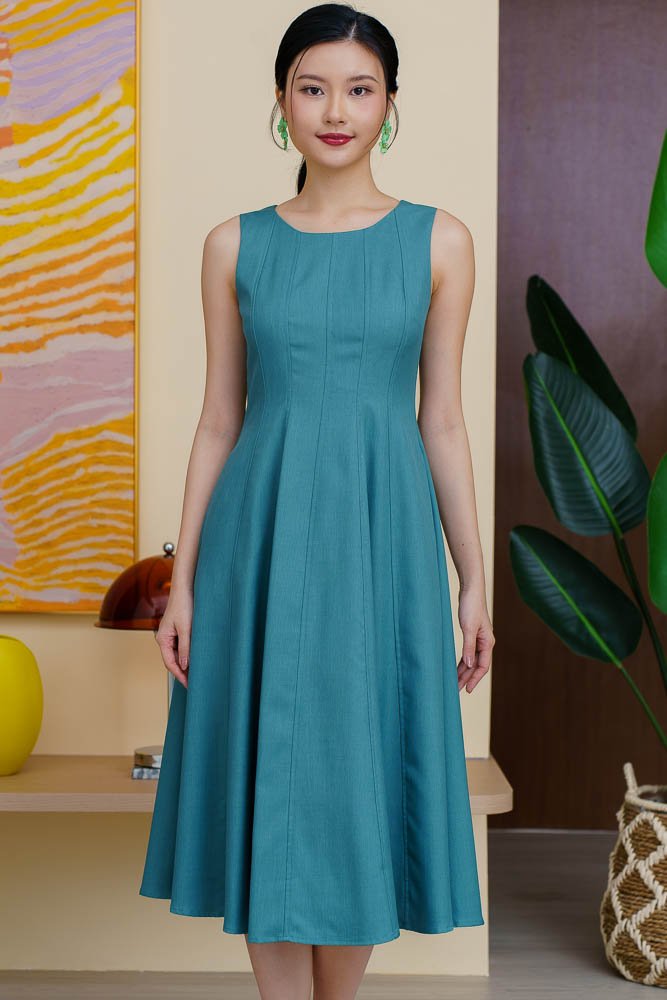 CONSTANZA PIPING FLARE DRESS (CERULEAN)