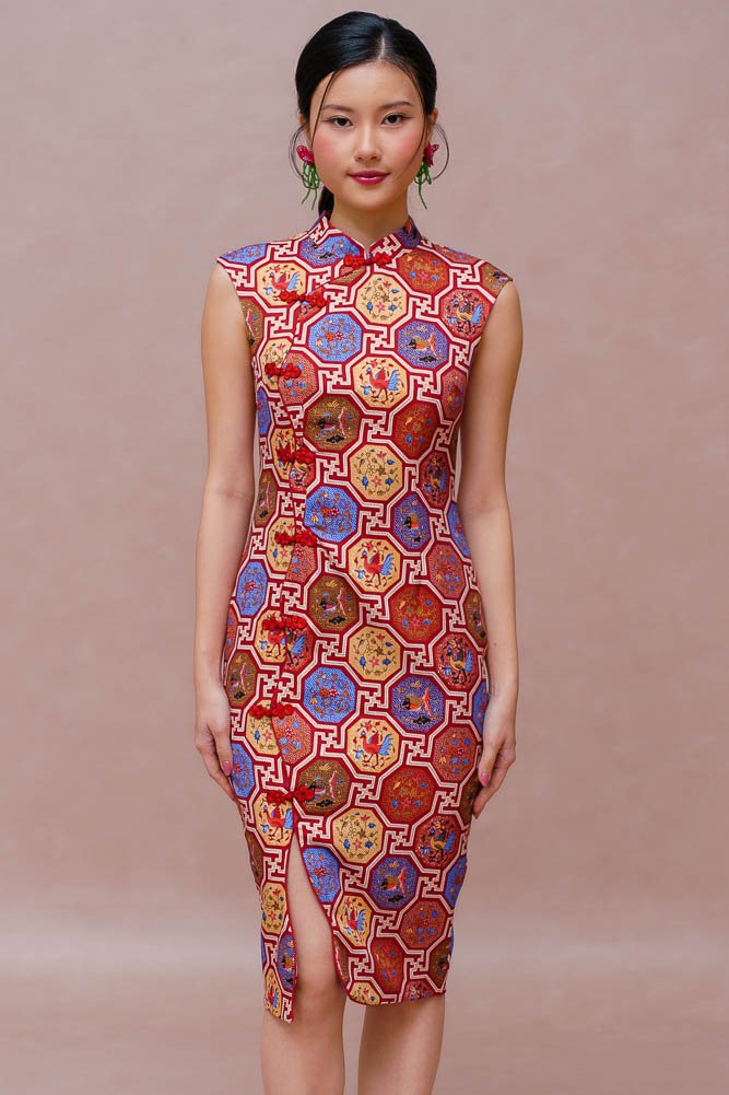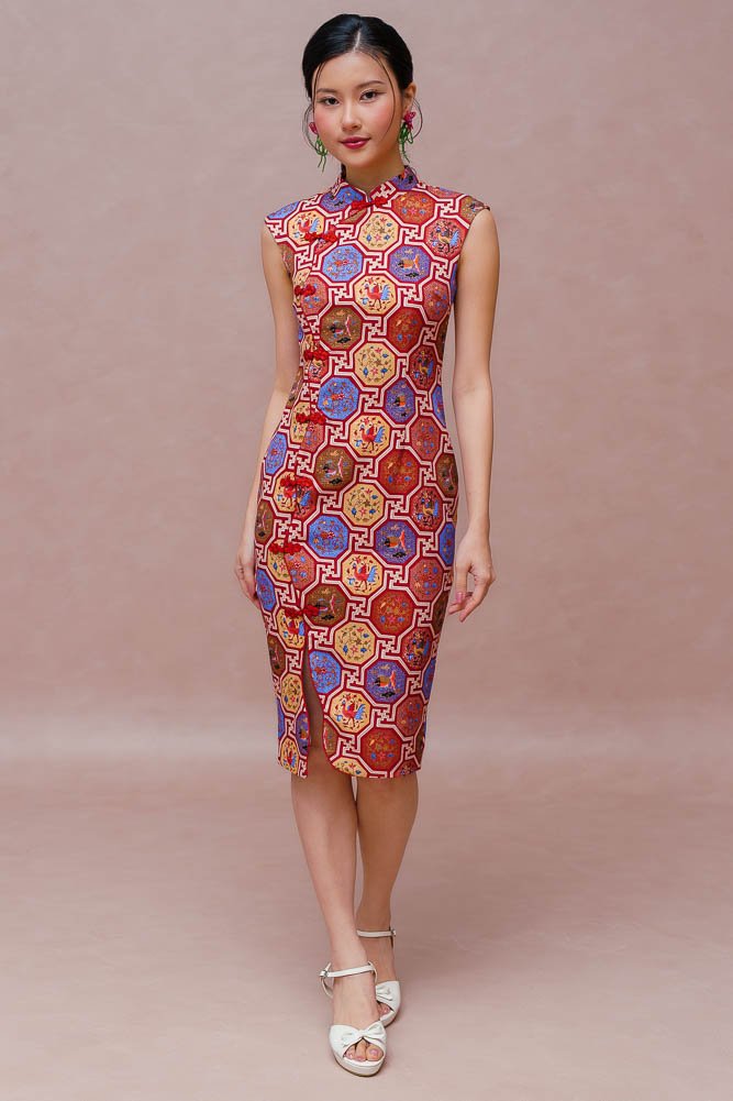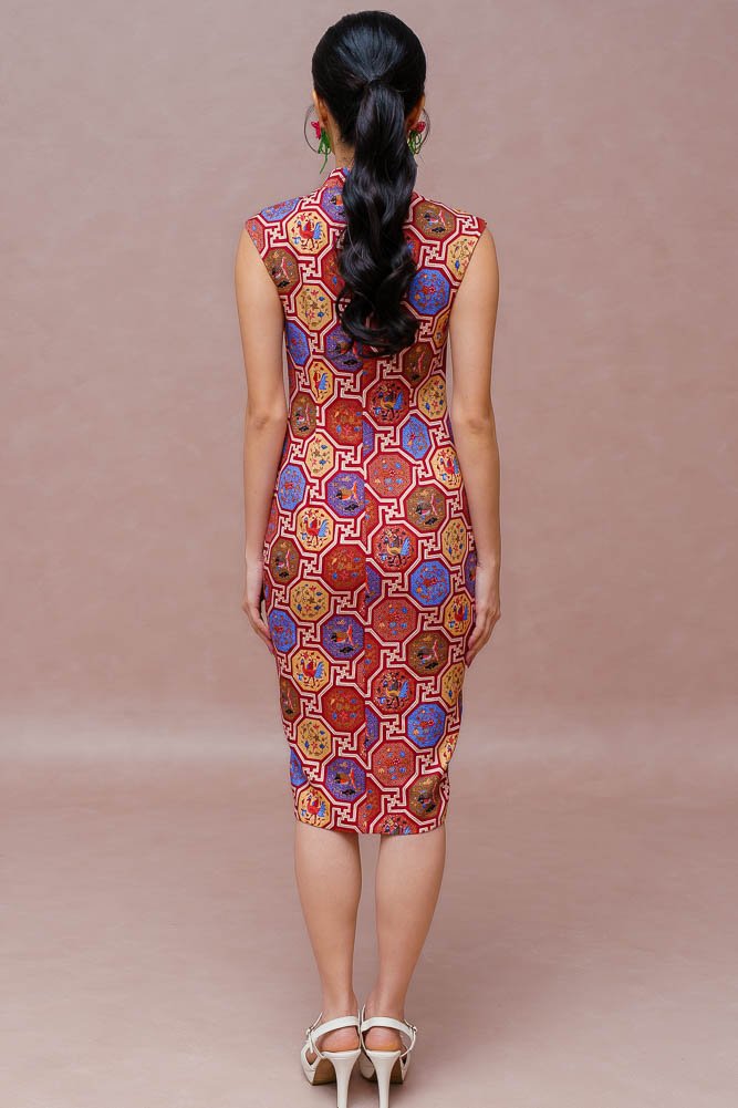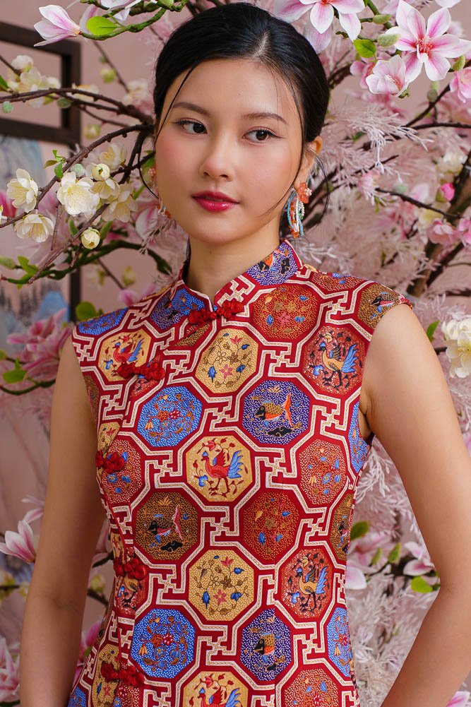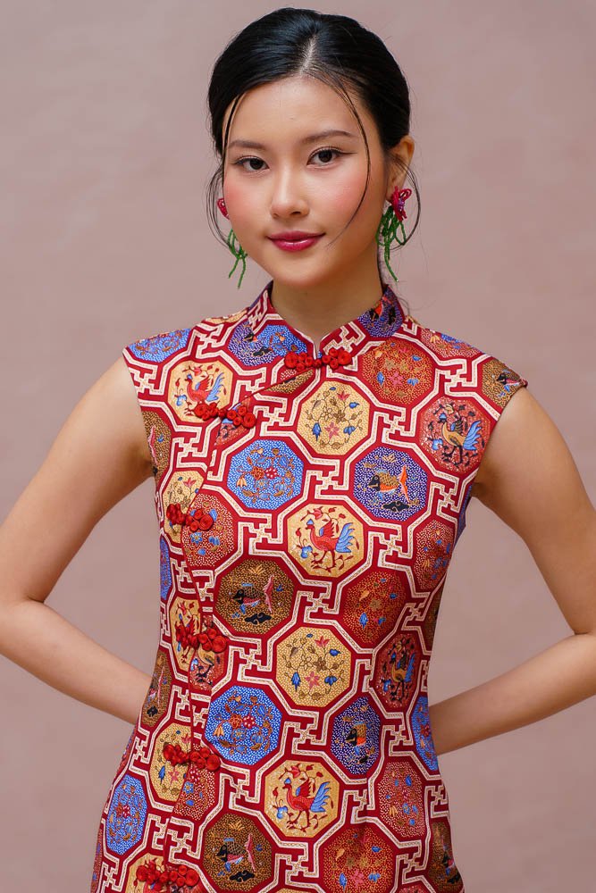 DREAM OF A THOUSAND MANSIONS BATIK CHEONGSAM DRESS (WINE RED)