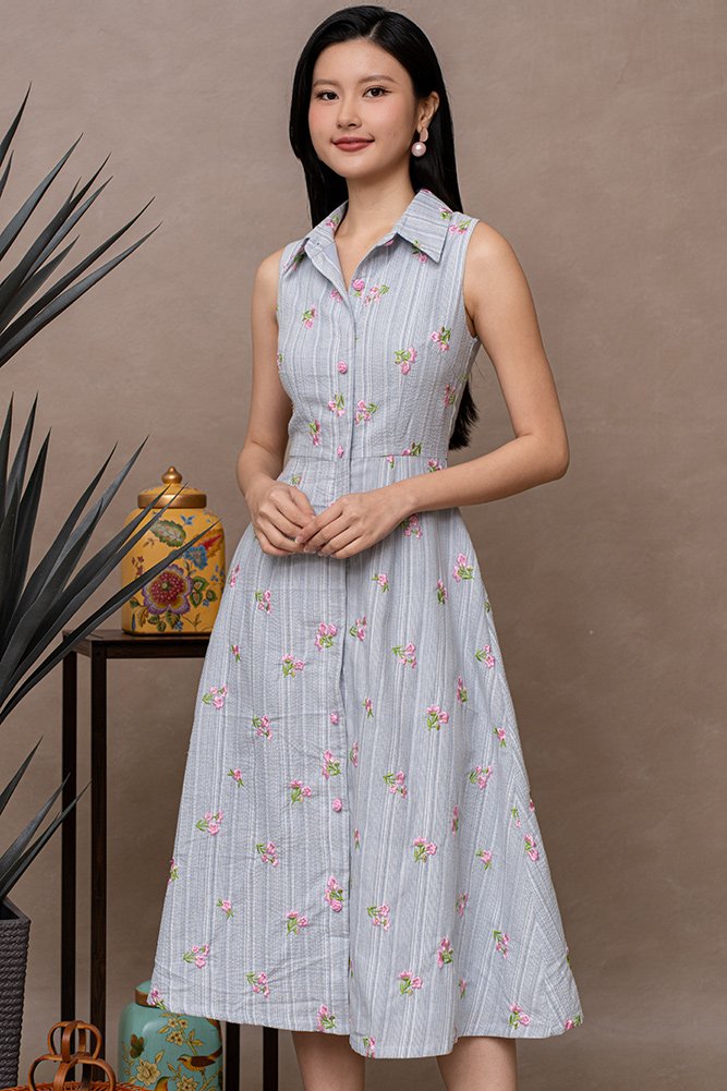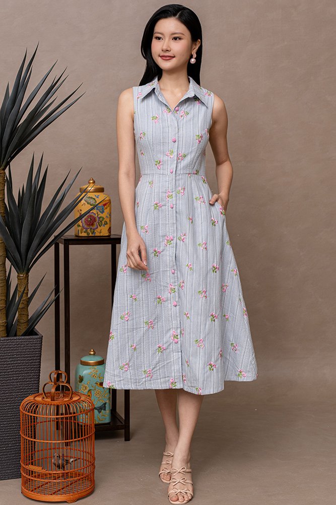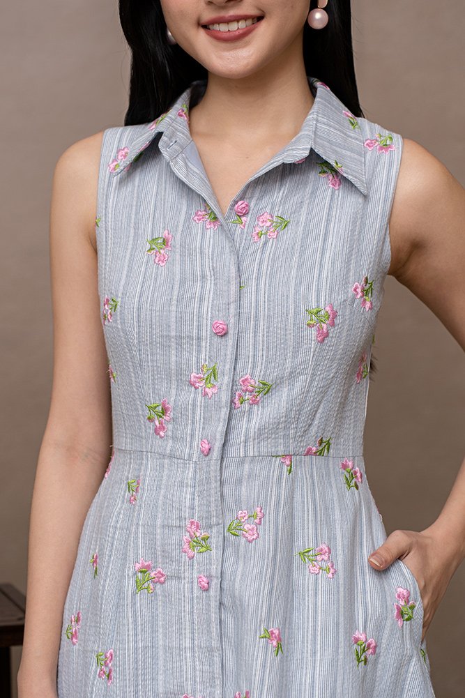 ELODIE EMBROIDERY SHIRT DRESS (LIGHT BLUE)