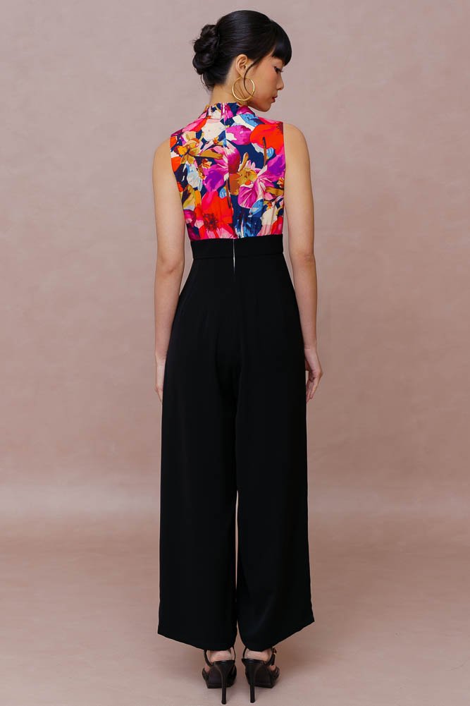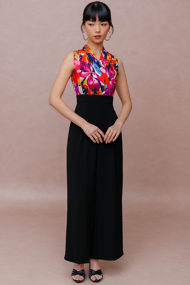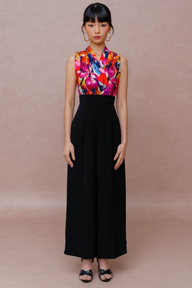 ENDELLION ORCHID RUCHED WRAP JUMPSUIT (NAVY)