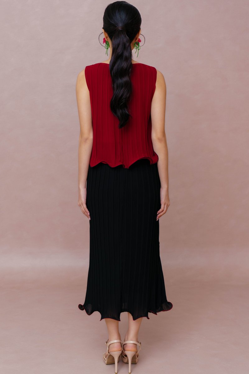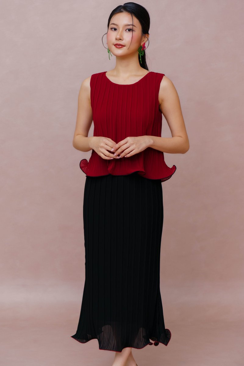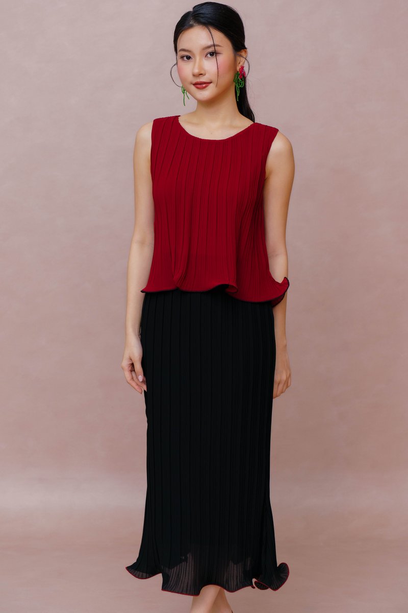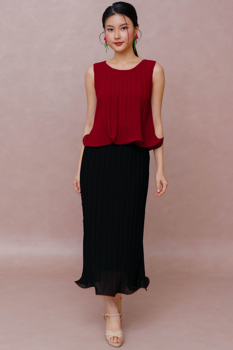 ESMERALDA CURLED HEM PLEATED DRESS (RICH MAROON)