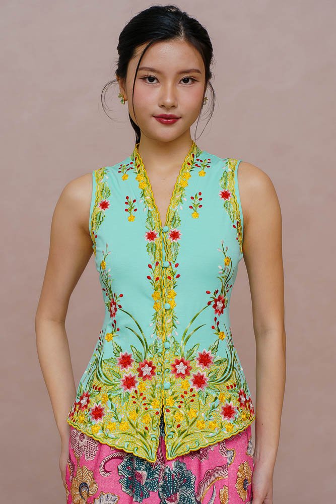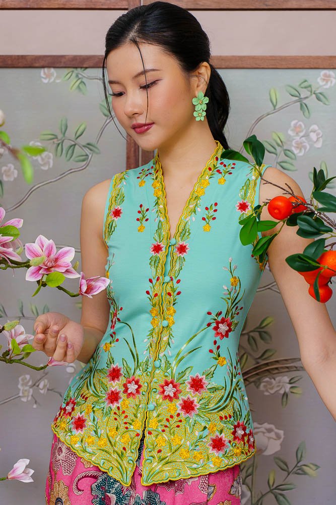 ETHEREAL BLOSSOMS EMBROIDERY NYONYA KEBAYA (CREAMY MINT)