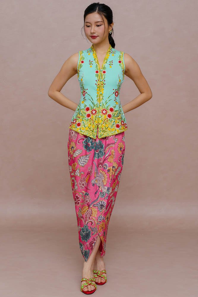 Note: The nyonya batik skirt worn by the model is sold separately.