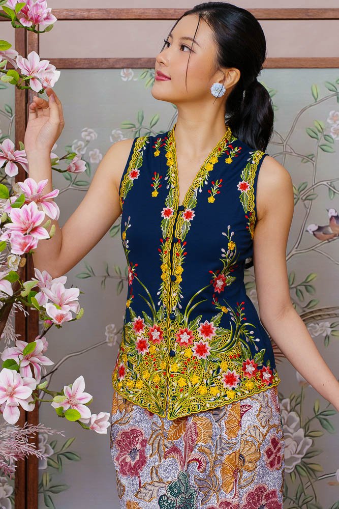 ETHEREAL BLOSSOMS EMBROIDERY NYONYA KEBAYA (DEEP NAVY)