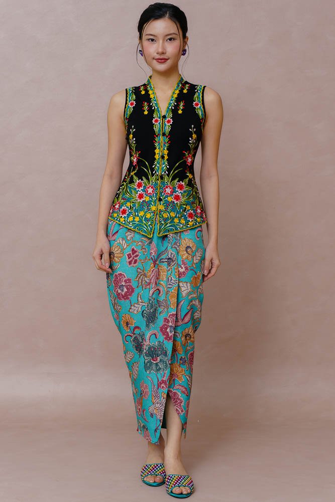 Note: The nyonya batik skirt worn by the model is sold separately.