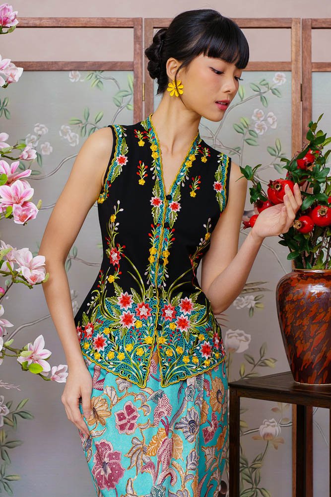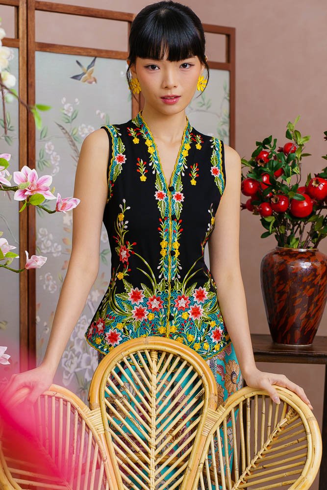 ETHEREAL BLOSSOMS EMBROIDERY NYONYA KEBAYA (JET BLACK)
