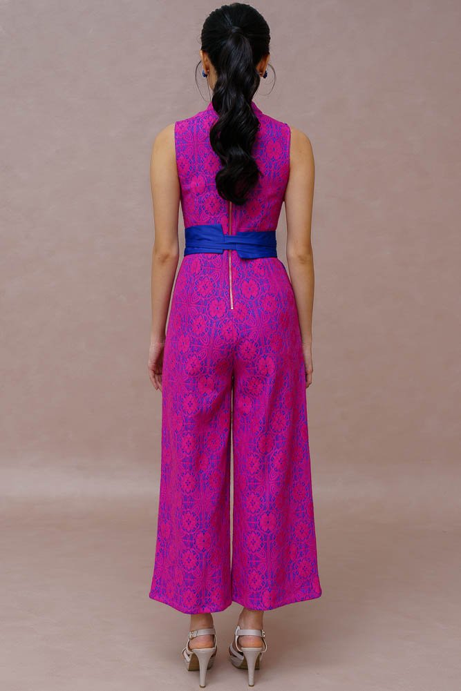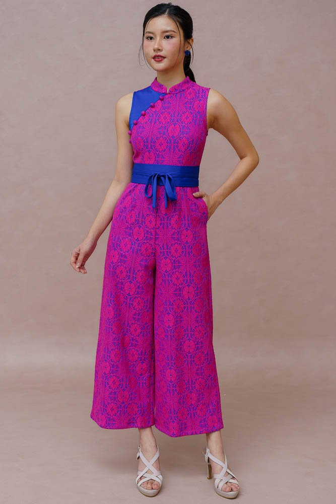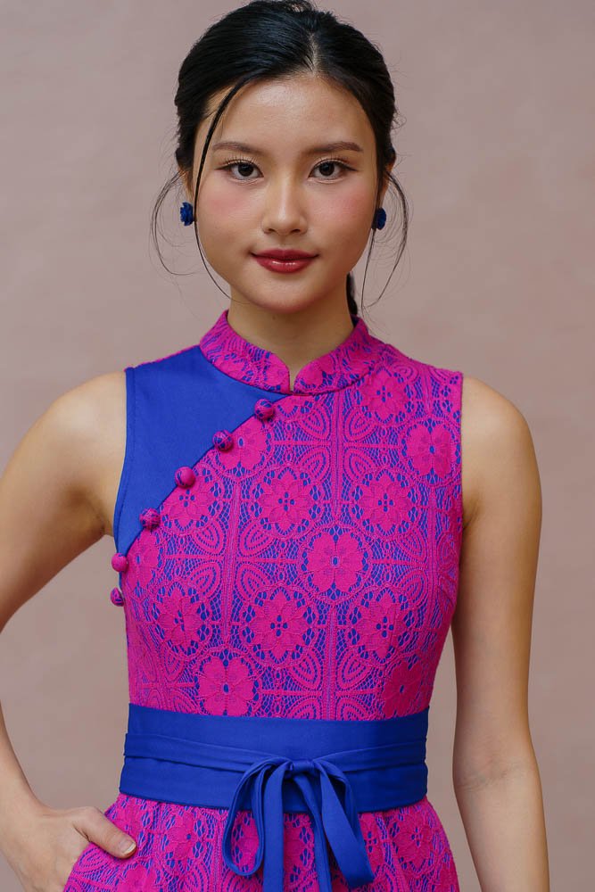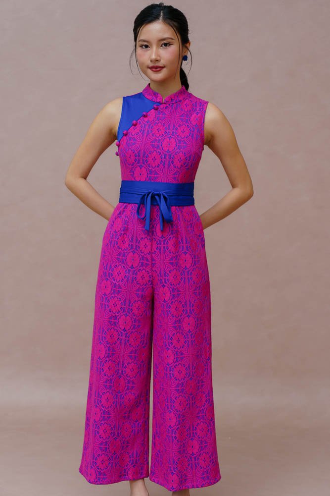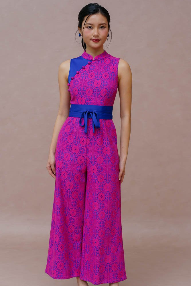 ETHEREAL THREAD LACE CHEONGSAM JUMPSUIT (ELECTRIC BLOOM PINK)
