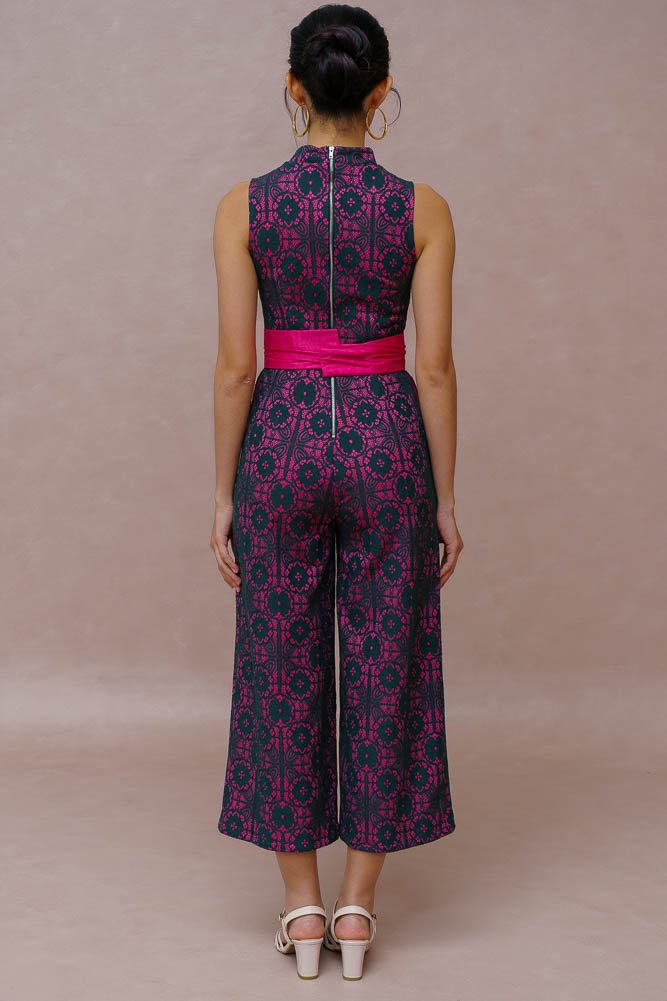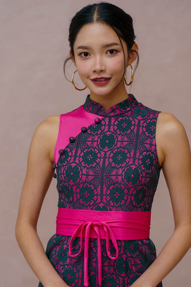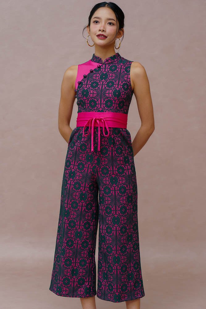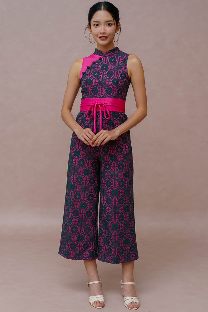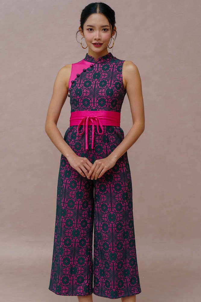 ETHEREAL THREAD LACE CHEONGSAM JUMPSUIT (FUCHSIA VELVET)