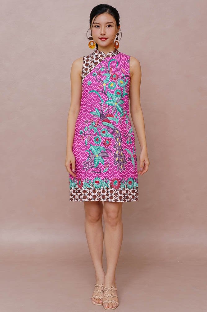 FASCINATING OMNITA BATIK CHEONGSAM DRESS (ROYAL FUCHSIA)