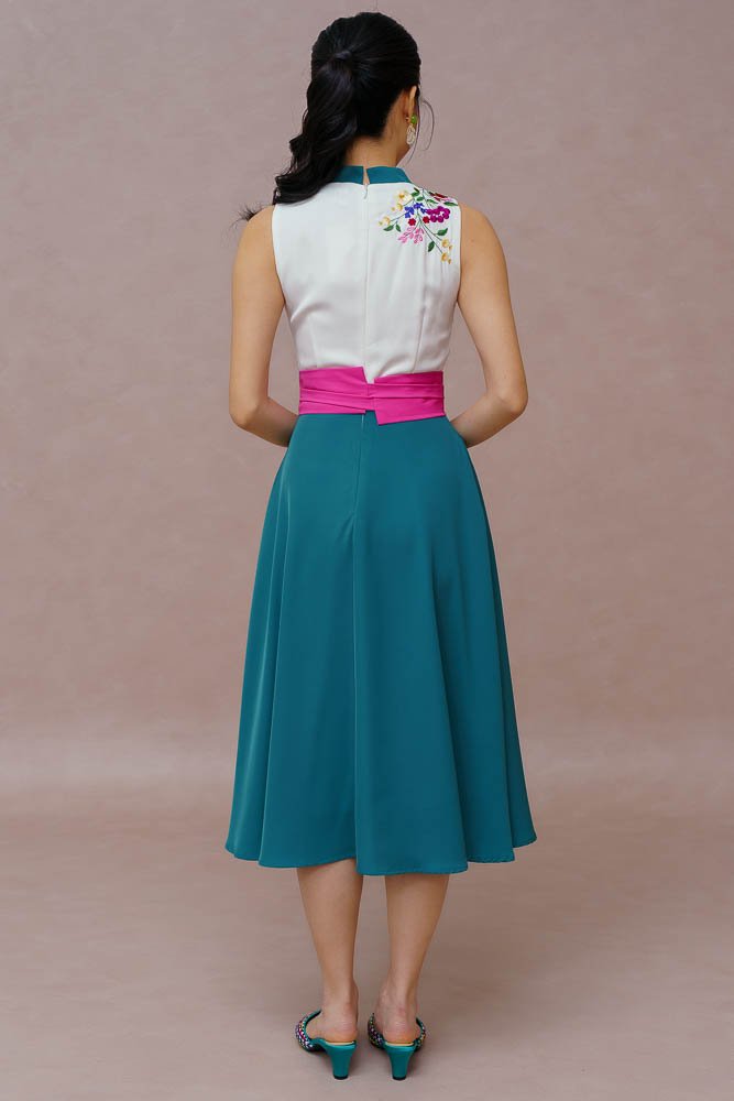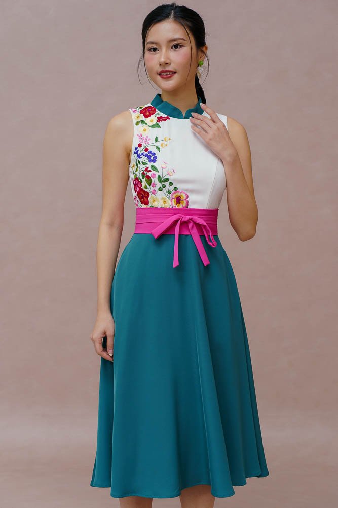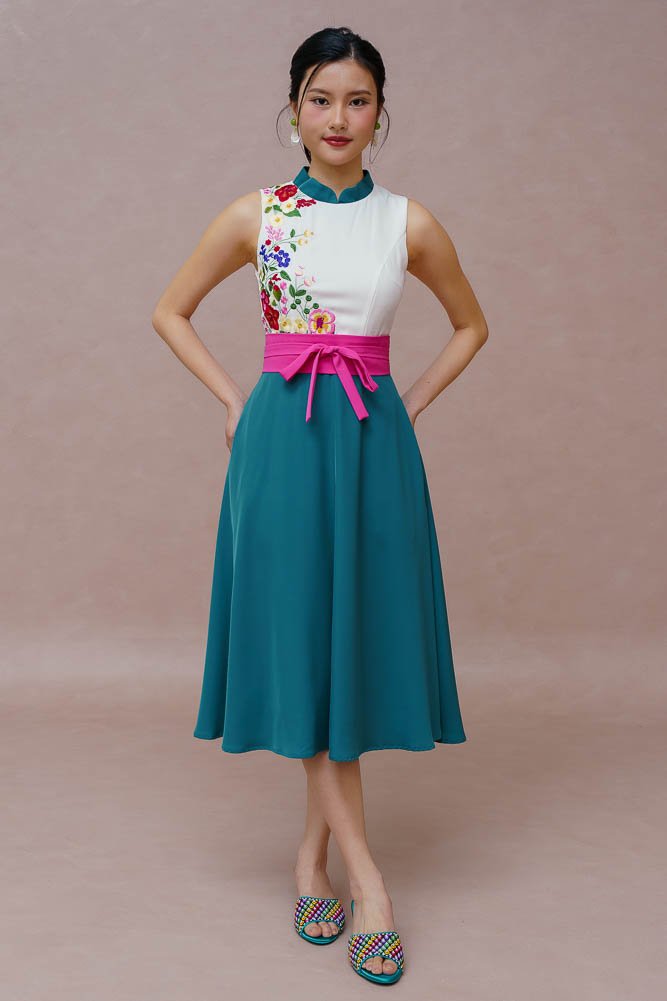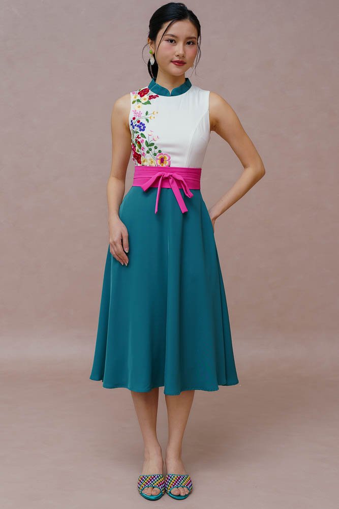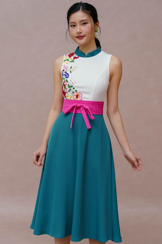 FLOREA SONATA EMBROIDERY CHEONGSAM DRESS (WHITE VERDANT)