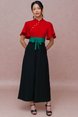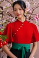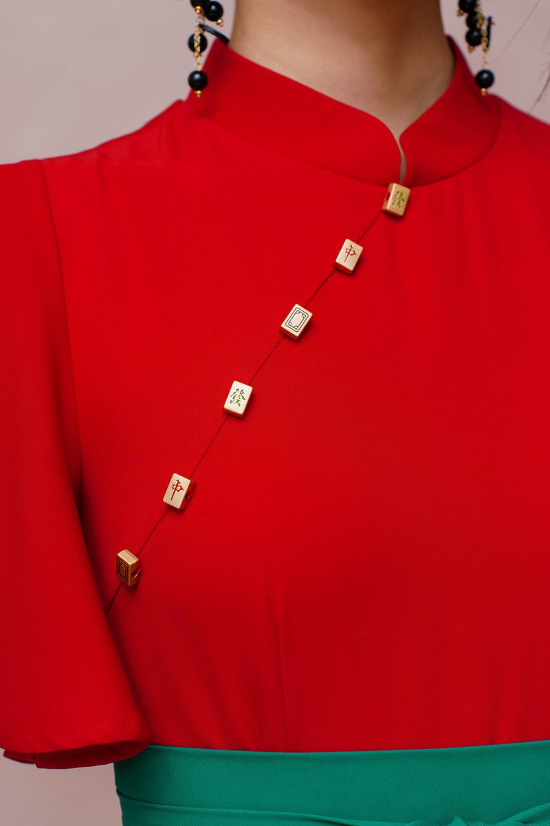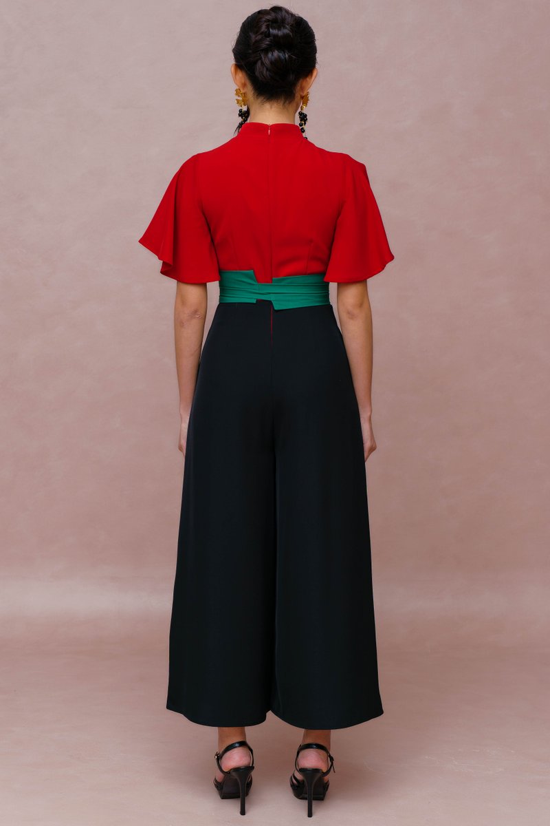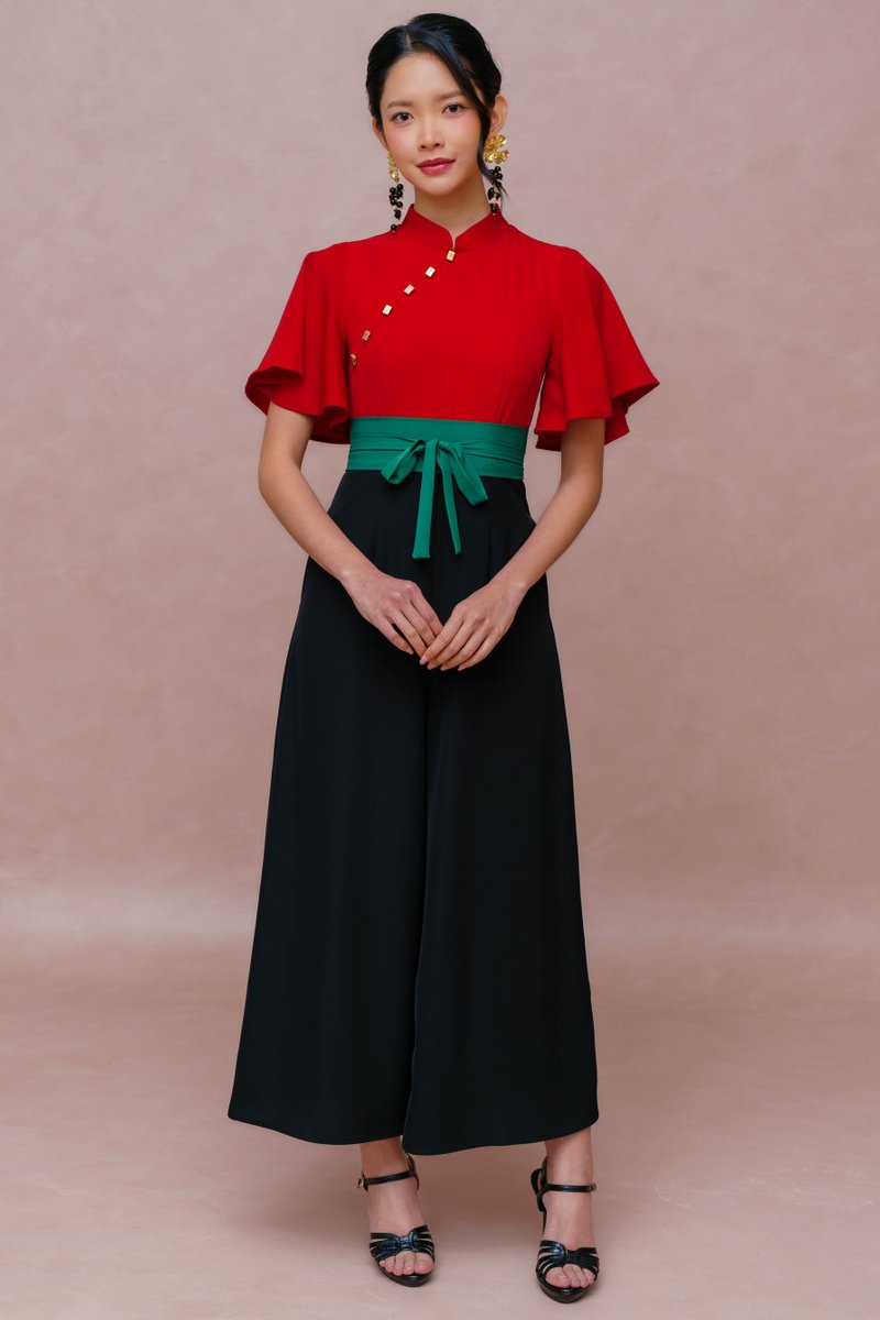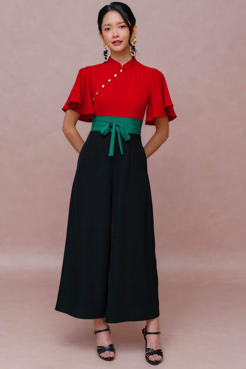 FORTUNE MUSE FLUTTER SLEEVED CHEONGSAM JUMPSUIT (CARDINAL RED)