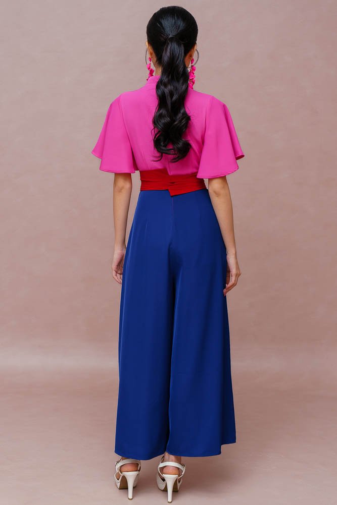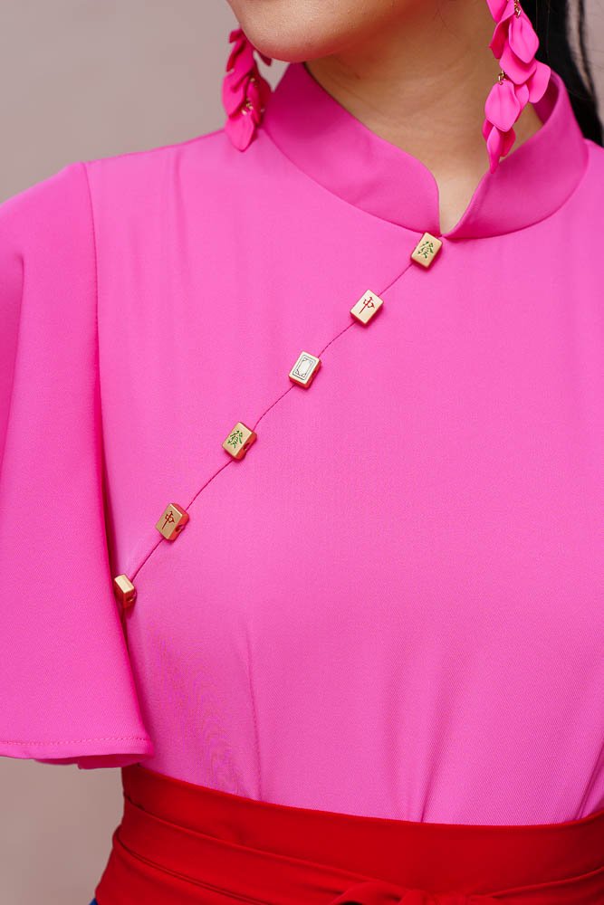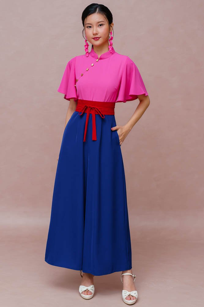 FORTUNE MUSE FLUTTER SLEEVED CHEONGSAM JUMPSUIT (FUCHSIA PINK)