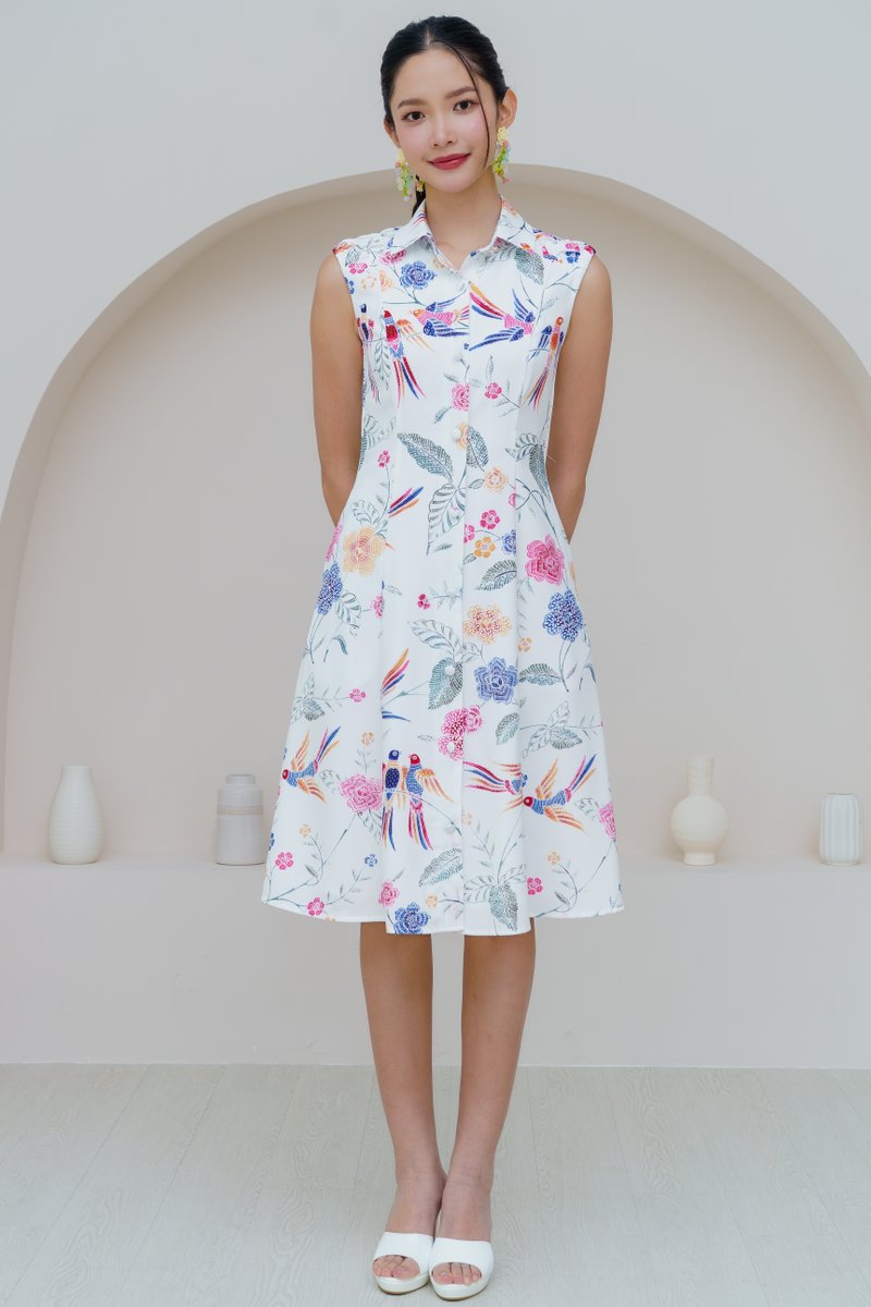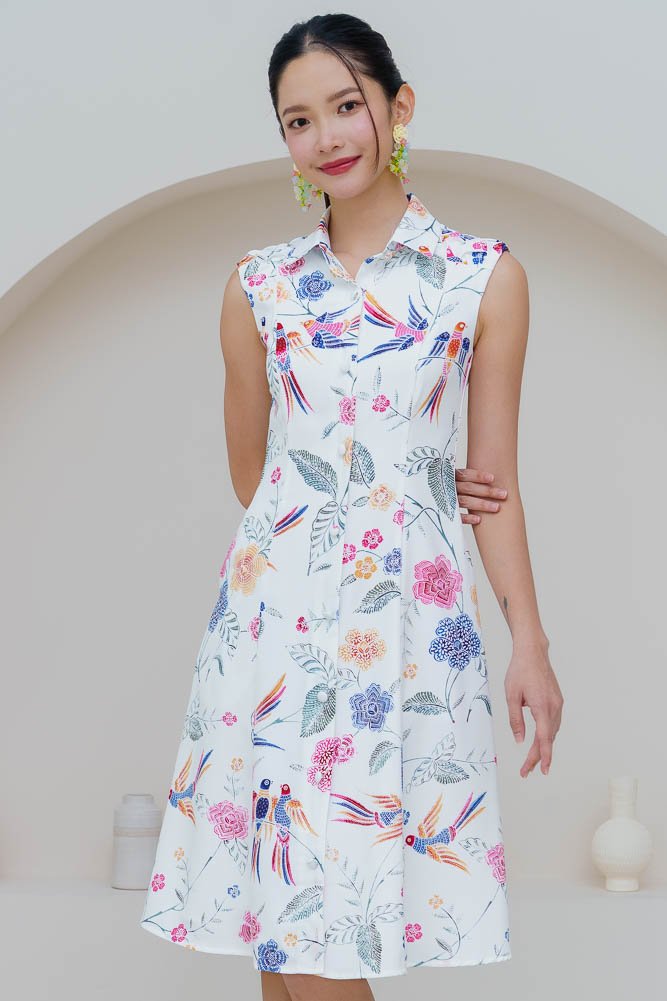 GLIDE OF THE SWALLOWS BATIK SHIRT DRESS (WHITE)