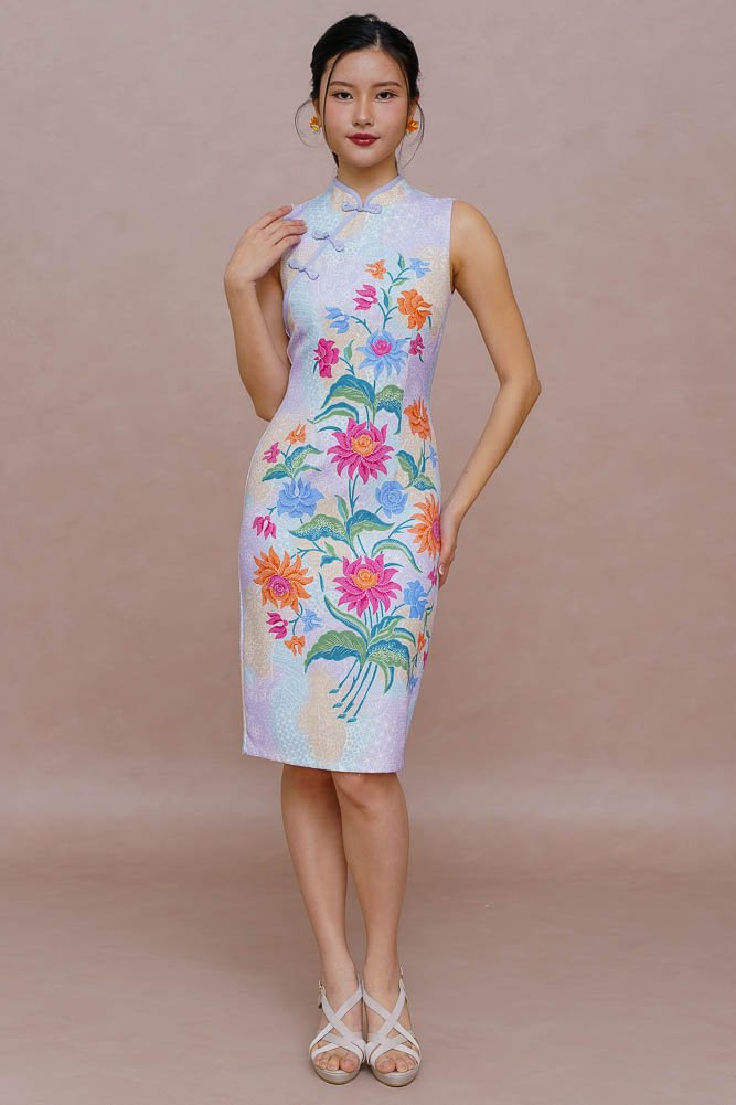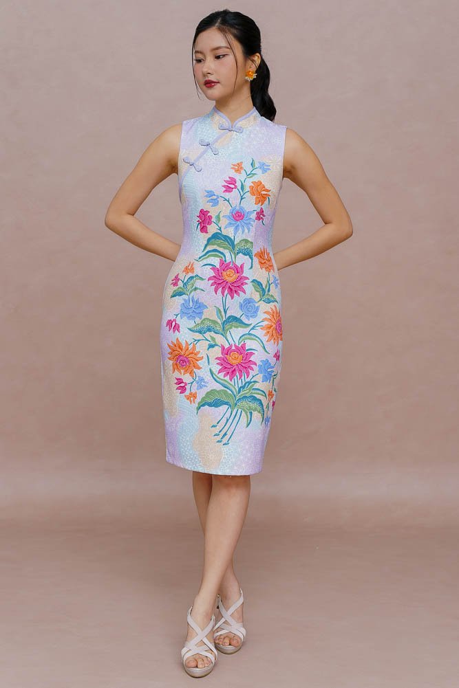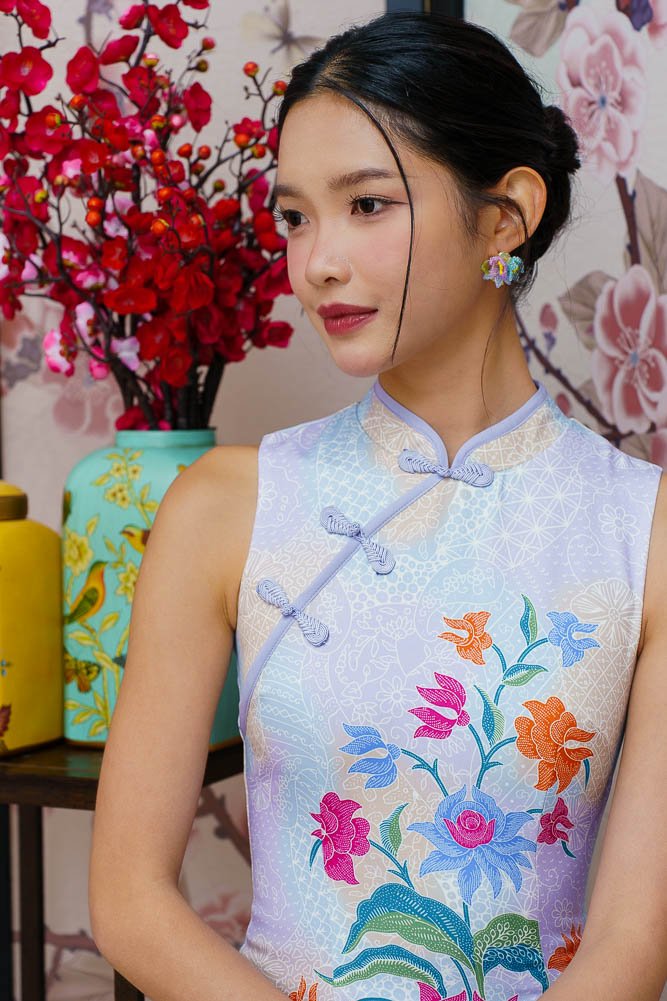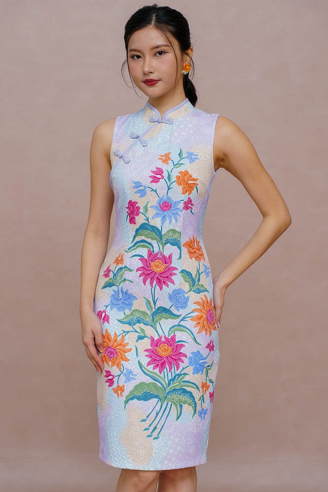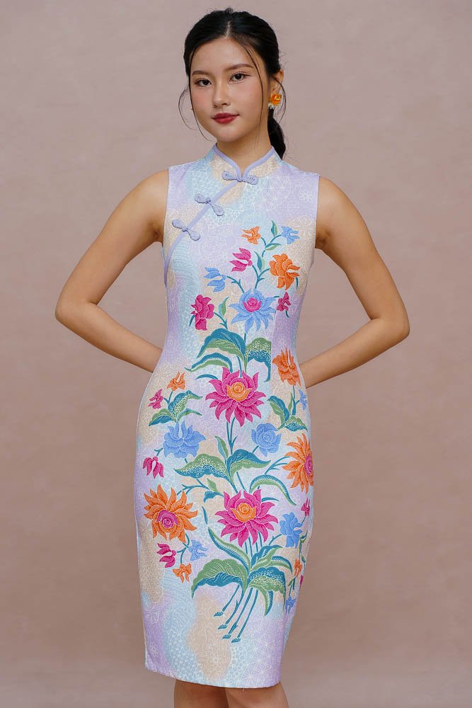GOLDEN SUNFALL BATIK CHEONGSAM DRESS (LILAC LEMON SKY)