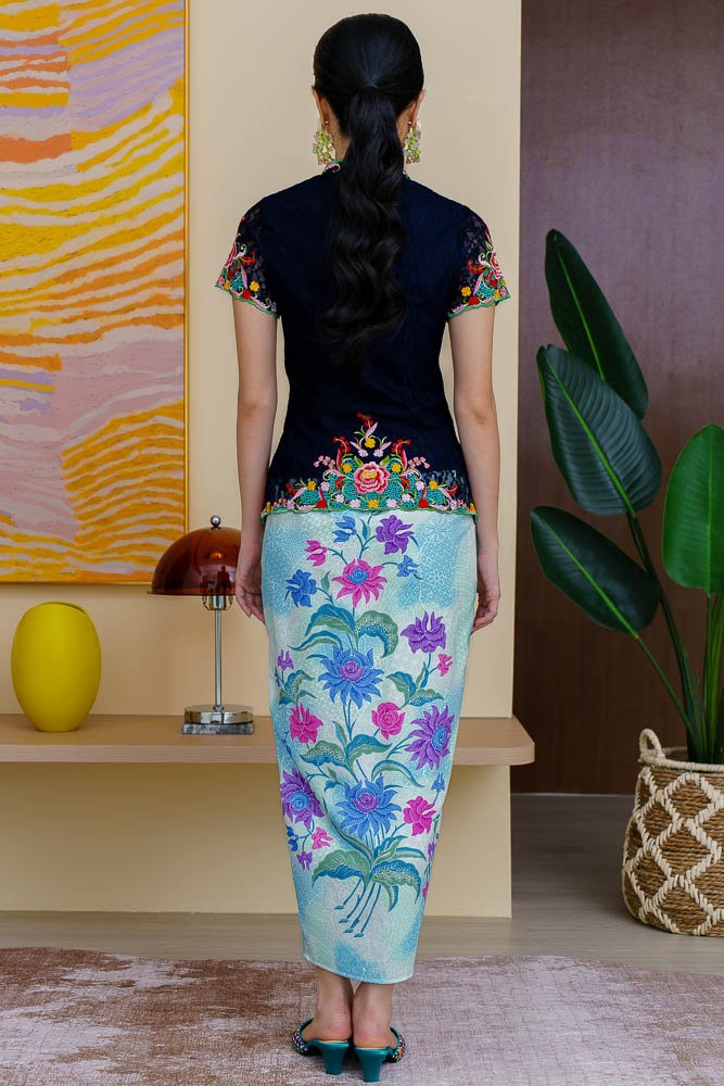 Note: The embroidery nyonya kebaya worn by the model is sold separately.