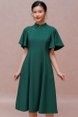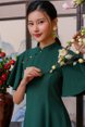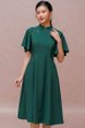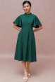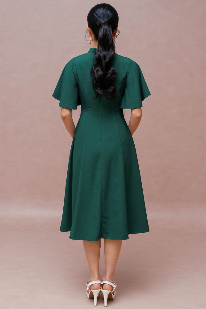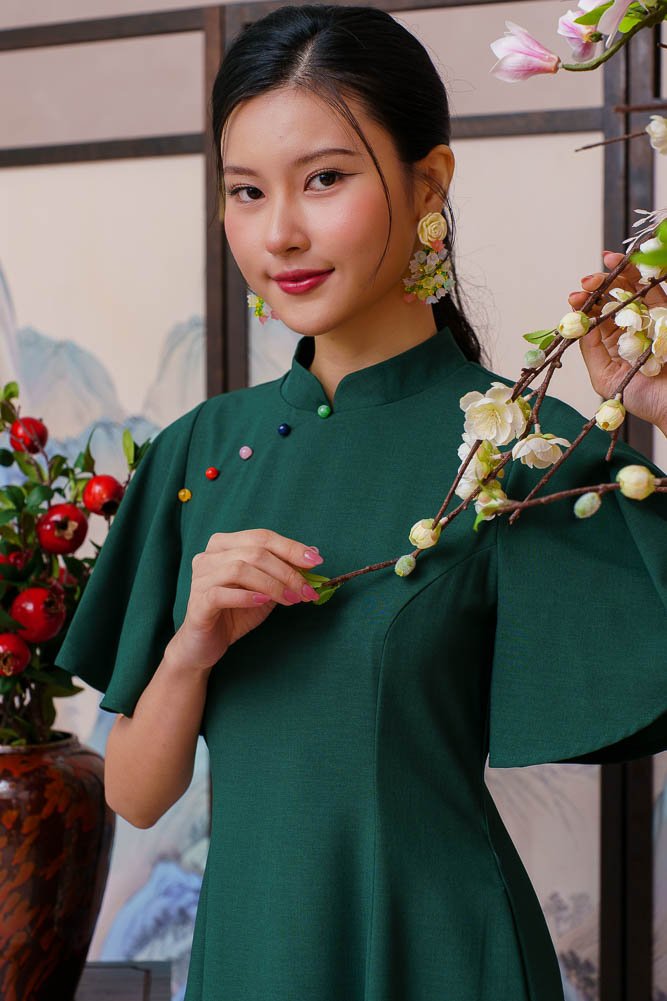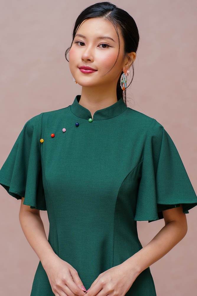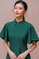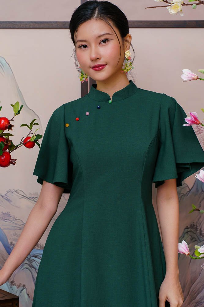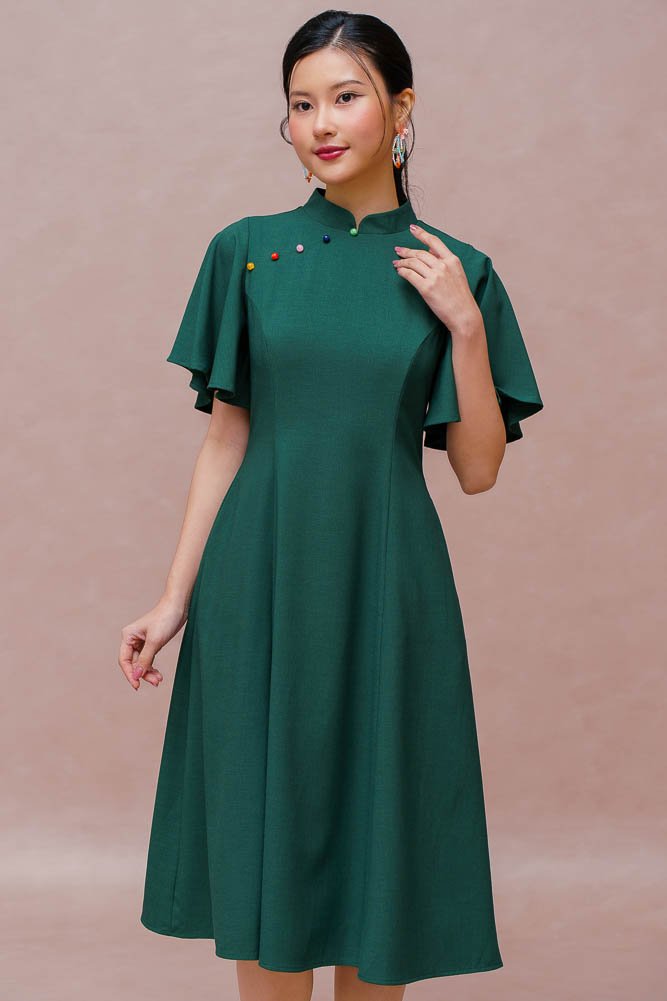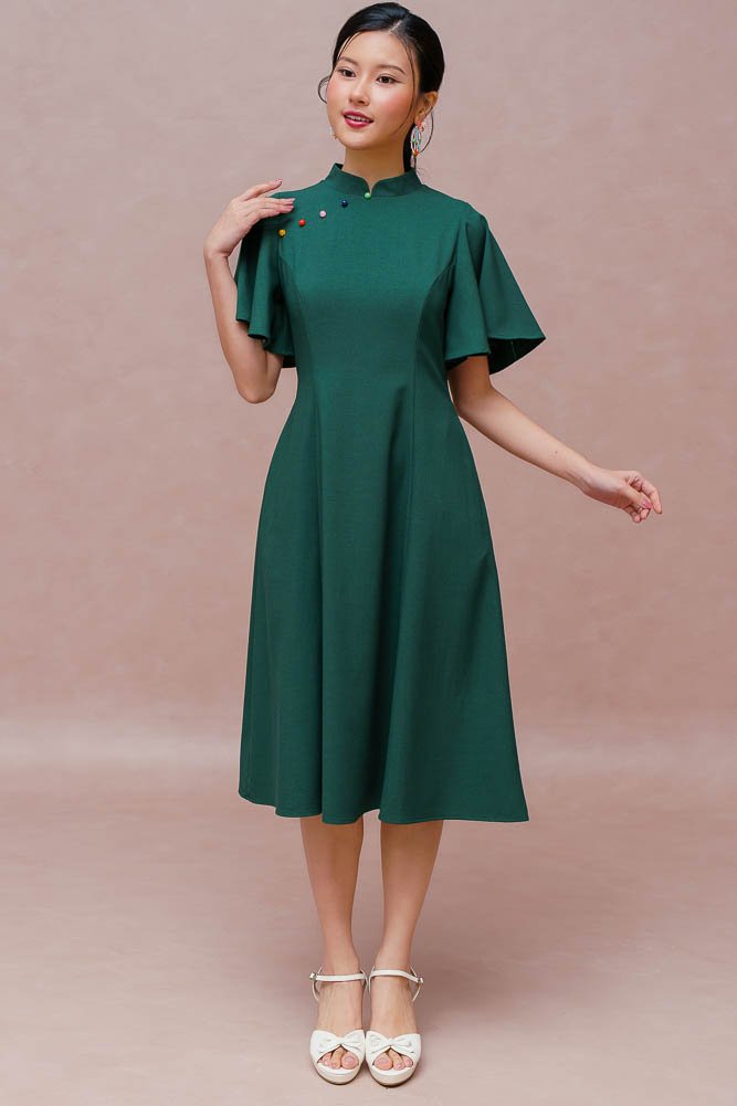 GOLDEN THREAD FLUTTER SLEEVED CHEONGSAM DRESS (DARK JADE)
