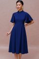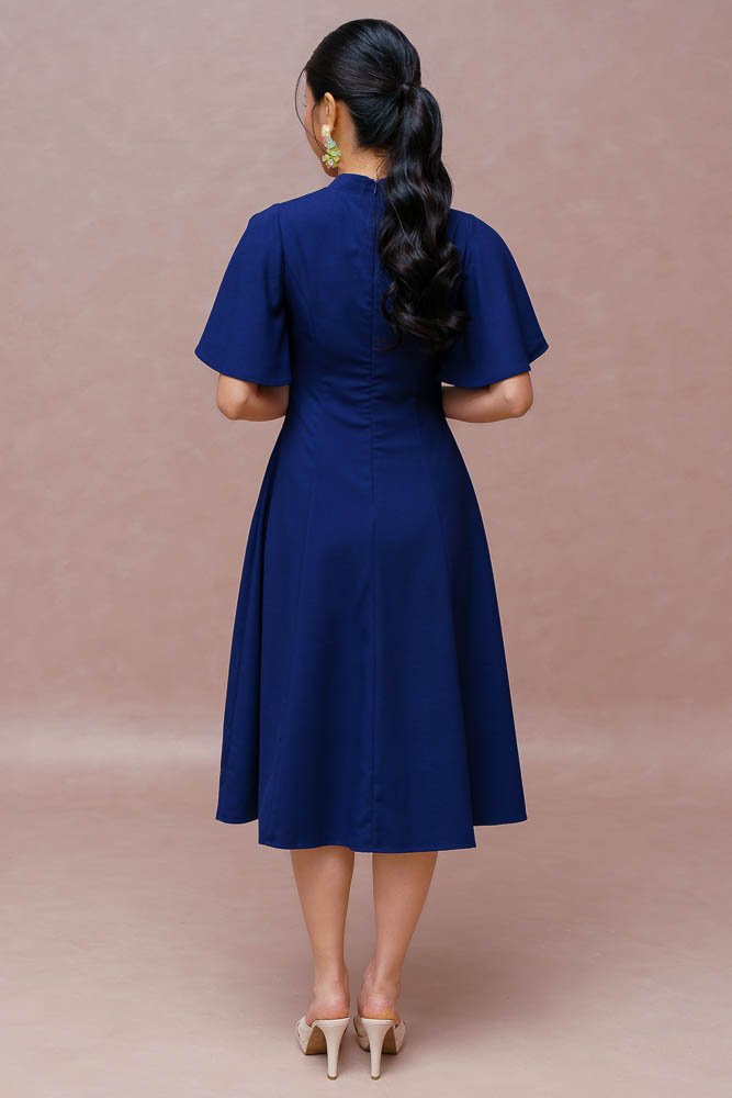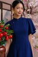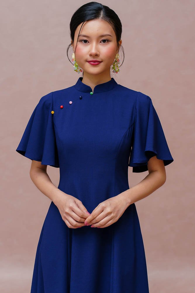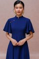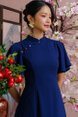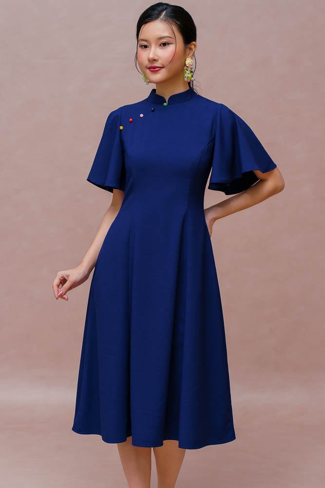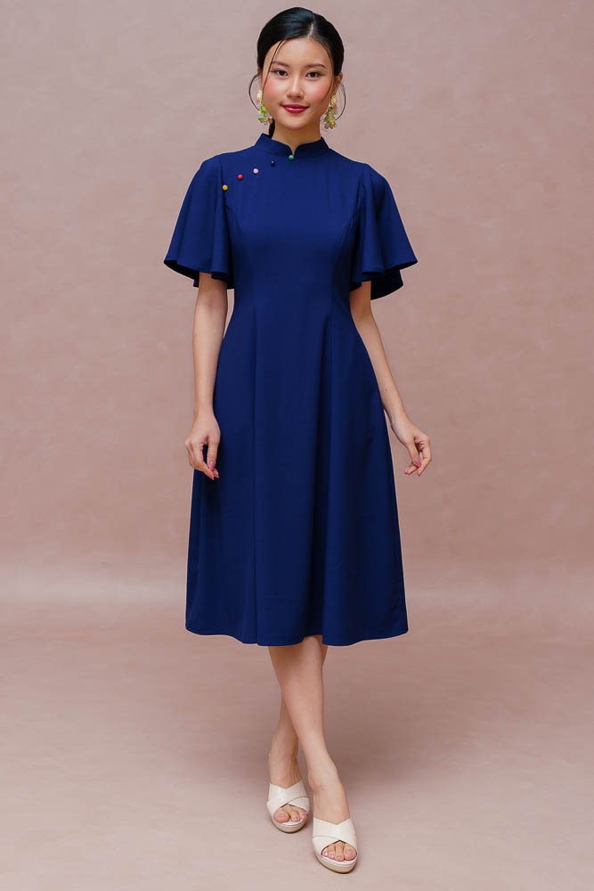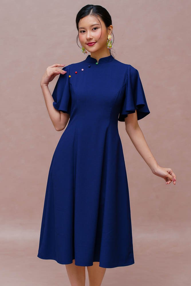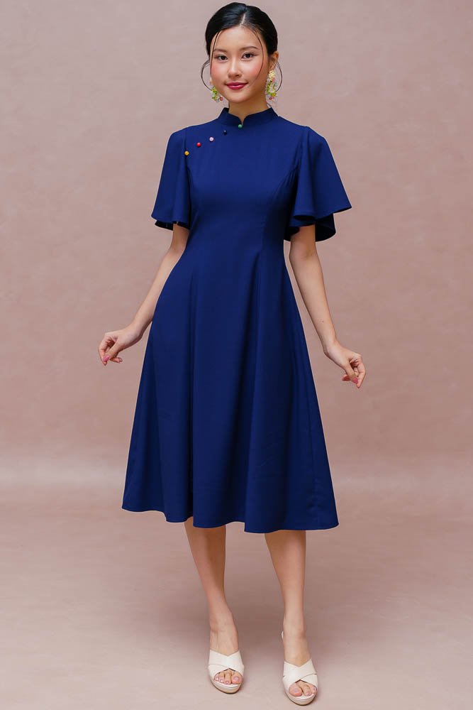 GOLDEN THREAD FLUTTER SLEEVED CHEONGSAM DRESS (ROYAL NAVY)