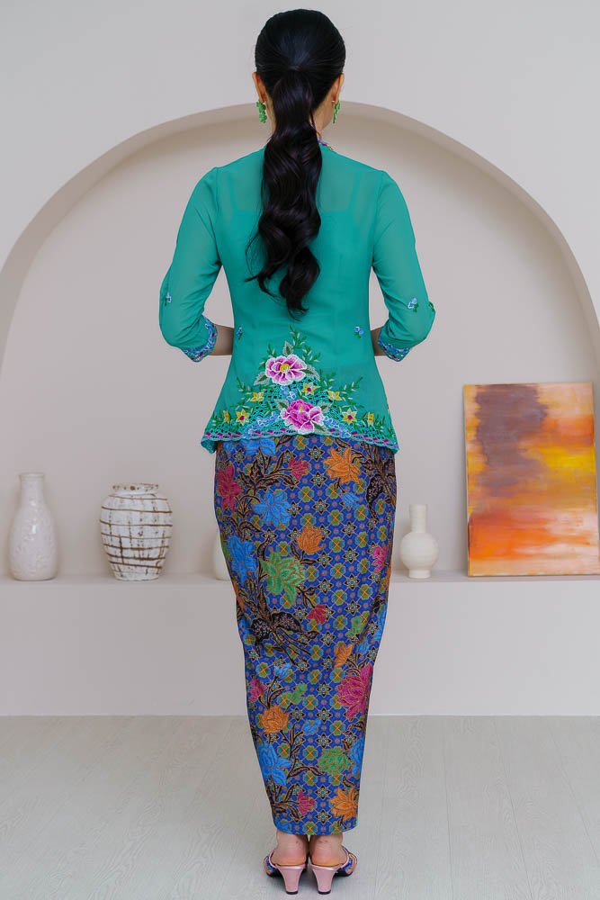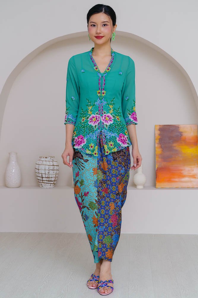 Note: The embroidery nyonya kebaya worn by the model is sold separately.