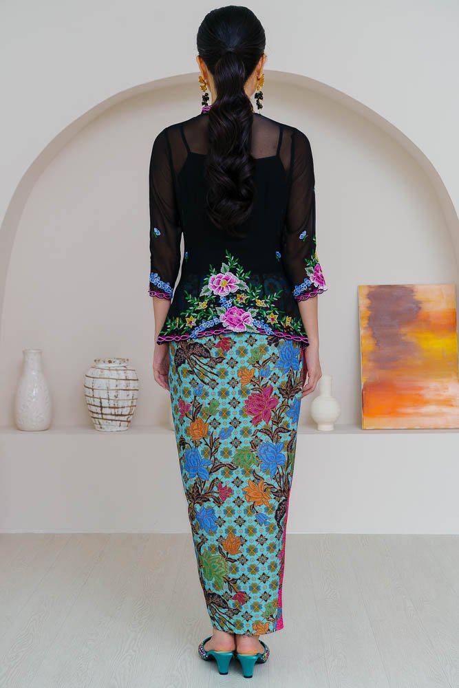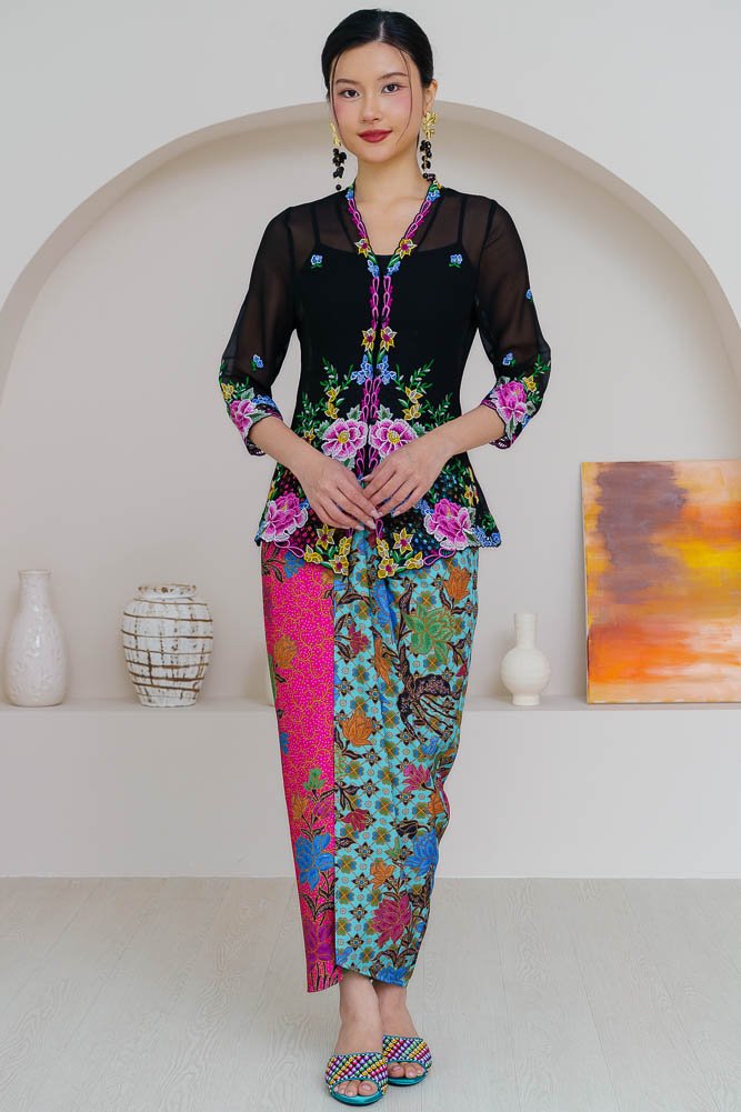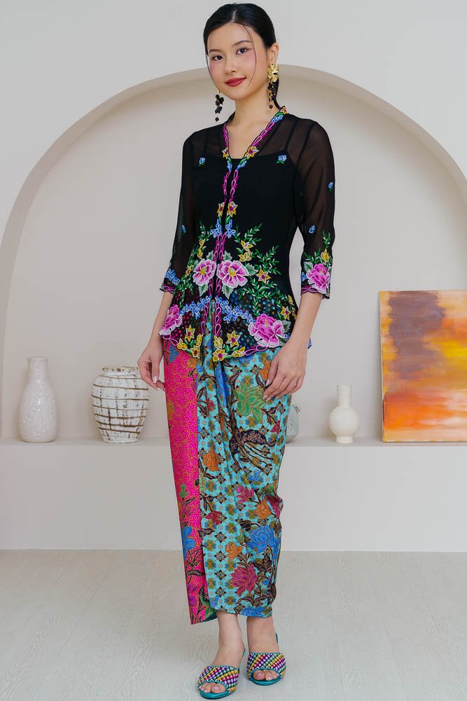 Note: The embroidery nyonya kebaya worn by the model is sold separately.