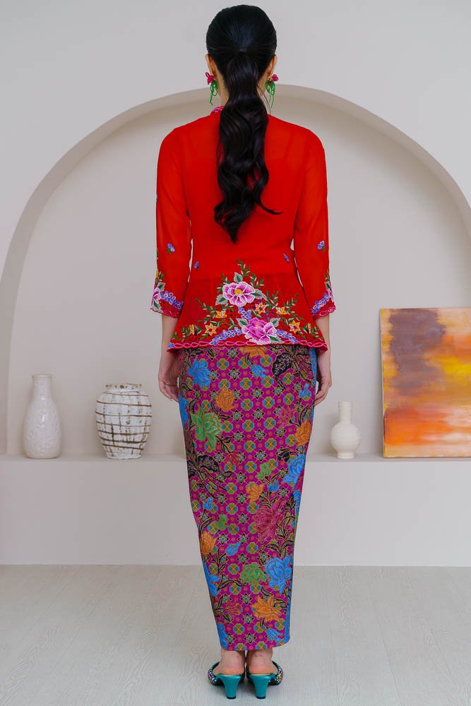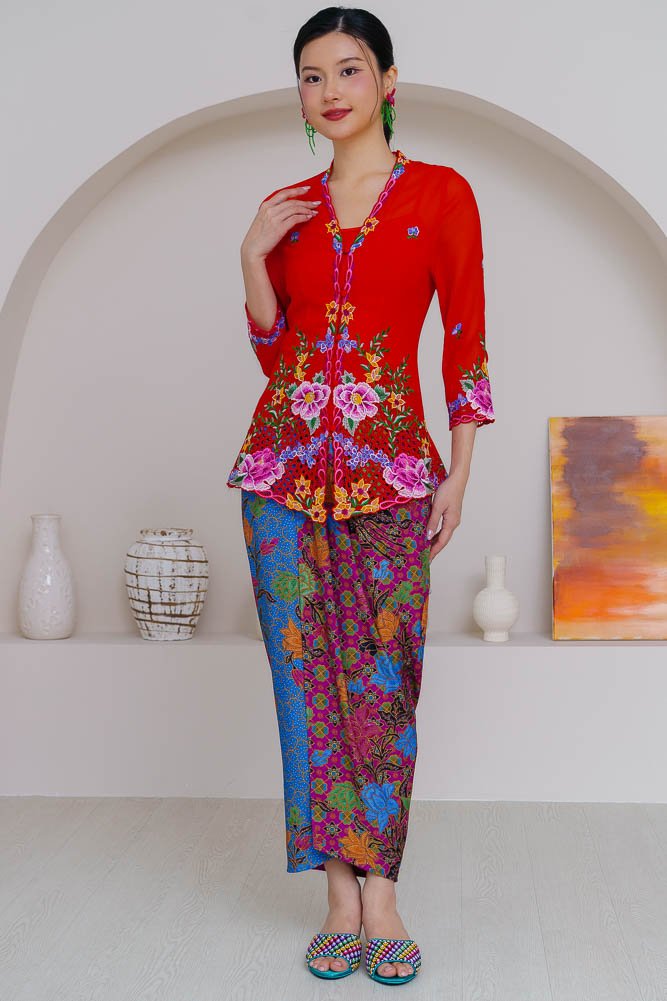 Note: The embroidery nyonya kebaya worn by the model is sold separately.