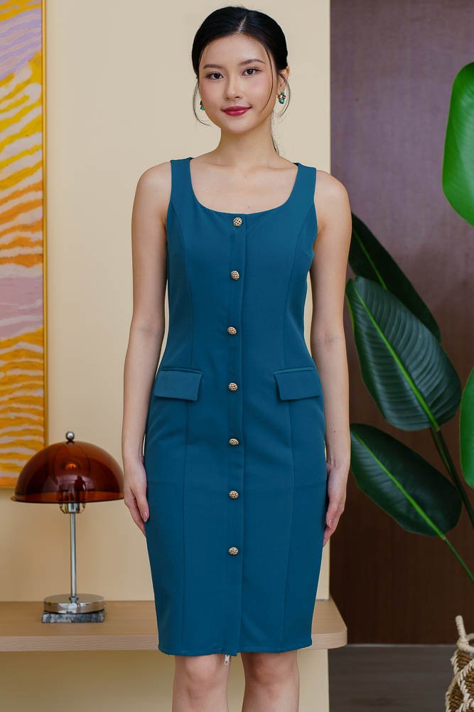 IMOGEN BUTTONS DOWN DRESS (TEAL)