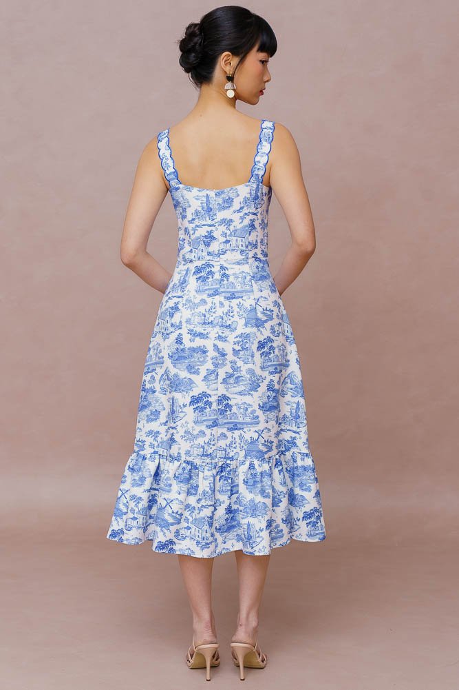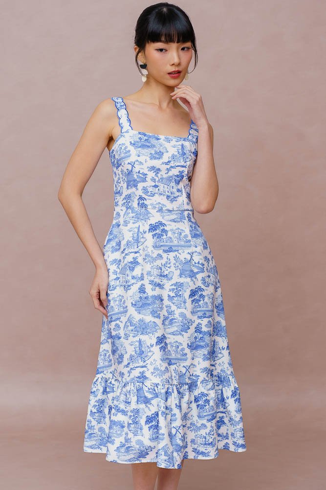 LA PASTORALE TOILE MIDI DRESS (BLUE TOILE)