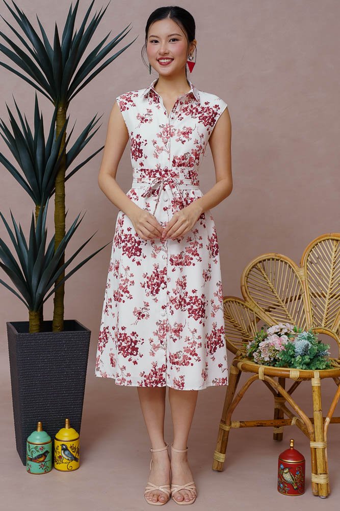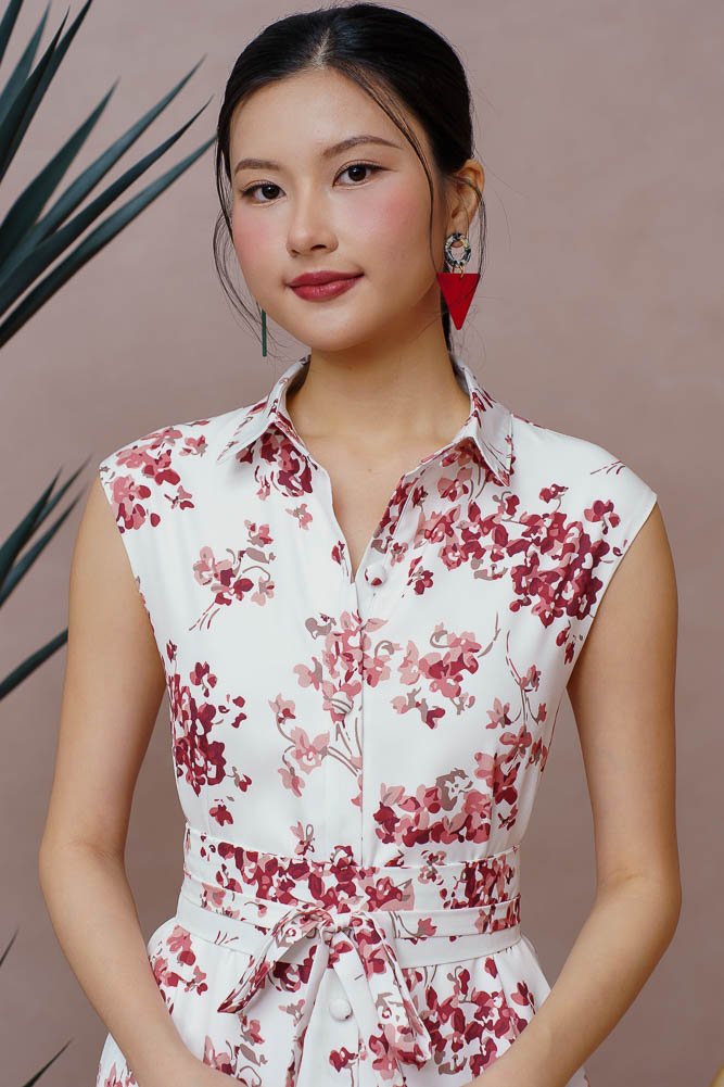 LOOM OF LIVING FLOWERS PRINT SHIRT DRESS (WHITE)