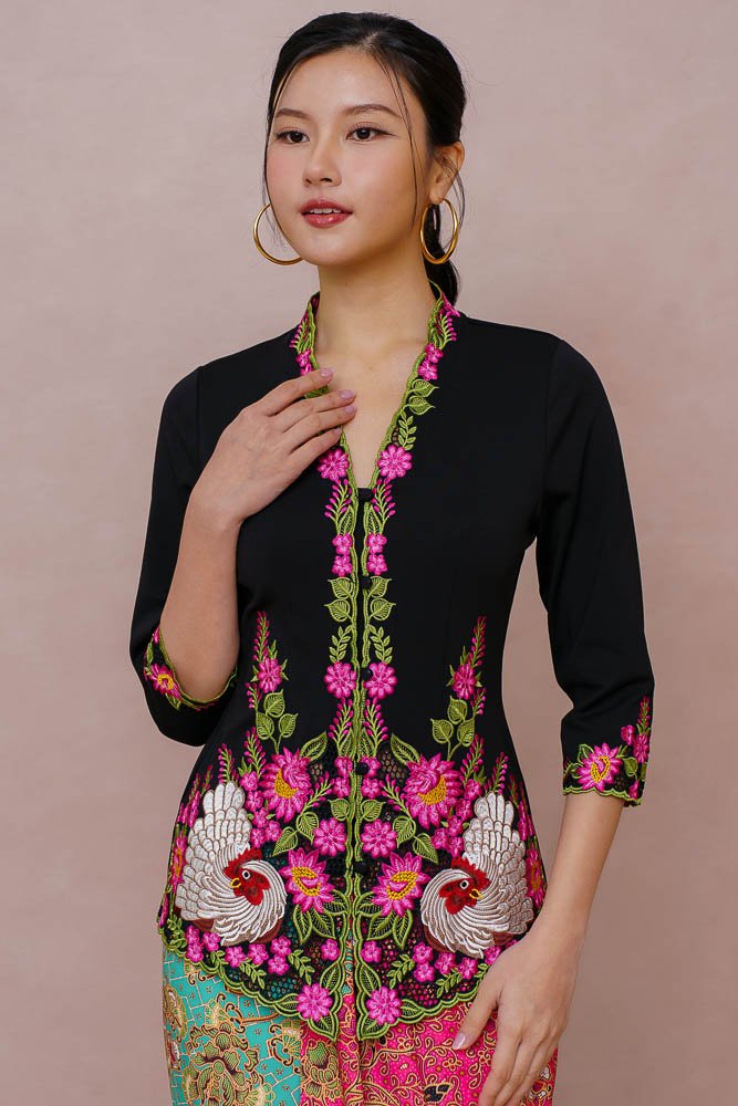 LULLABY OF PETALS & FEATHERS EMBROIDERY NYONYA KEBAYA (BLACK)