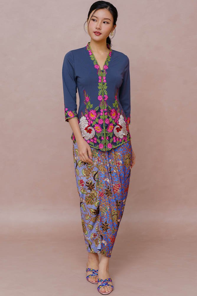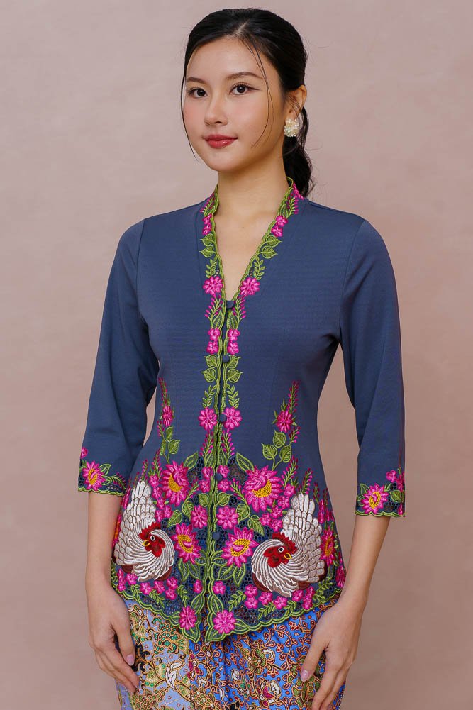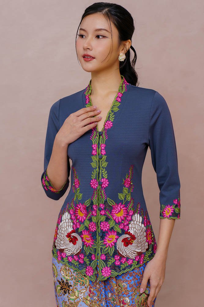 LULLABY OF PETALS & FEATHERS EMBROIDERY NYONYA KEBAYA (PEWTER)