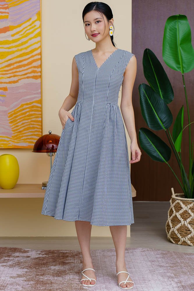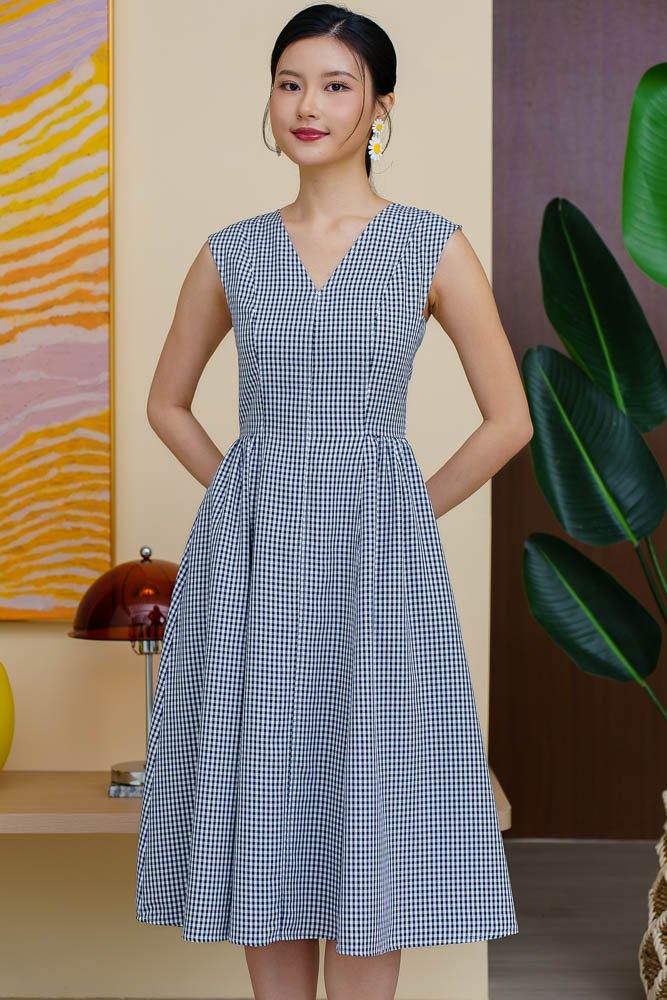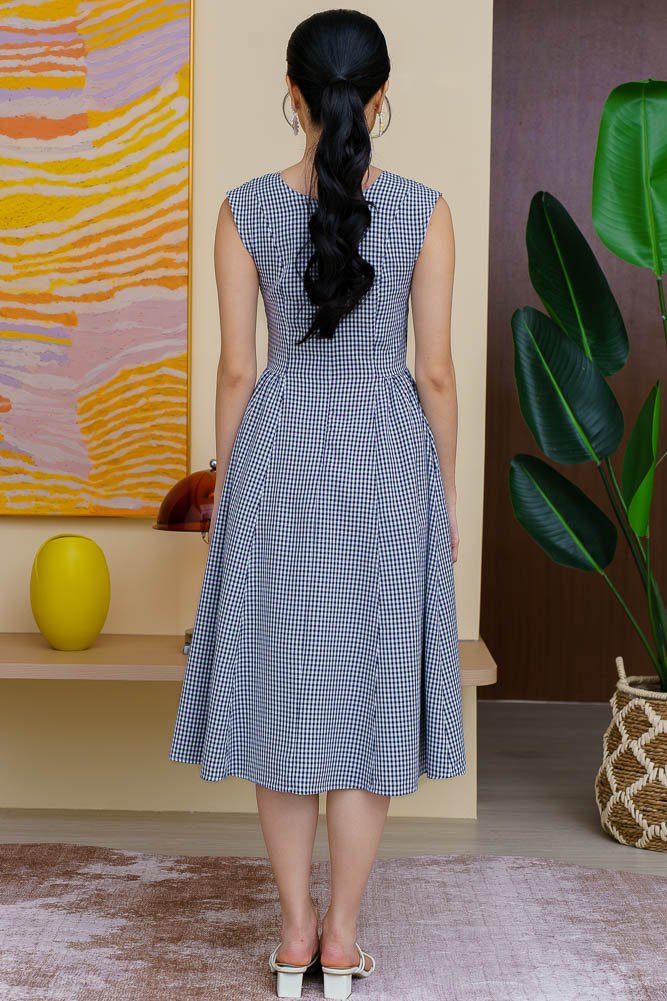 MILANA GINGHAM FLARE DRESS (DARK NAVY)
